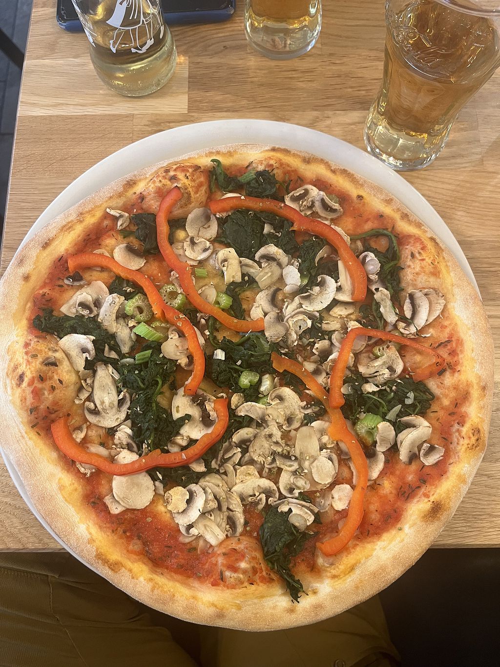 Aubergine, tomato, tofu, mint & pommegranite cream vegan pizza π