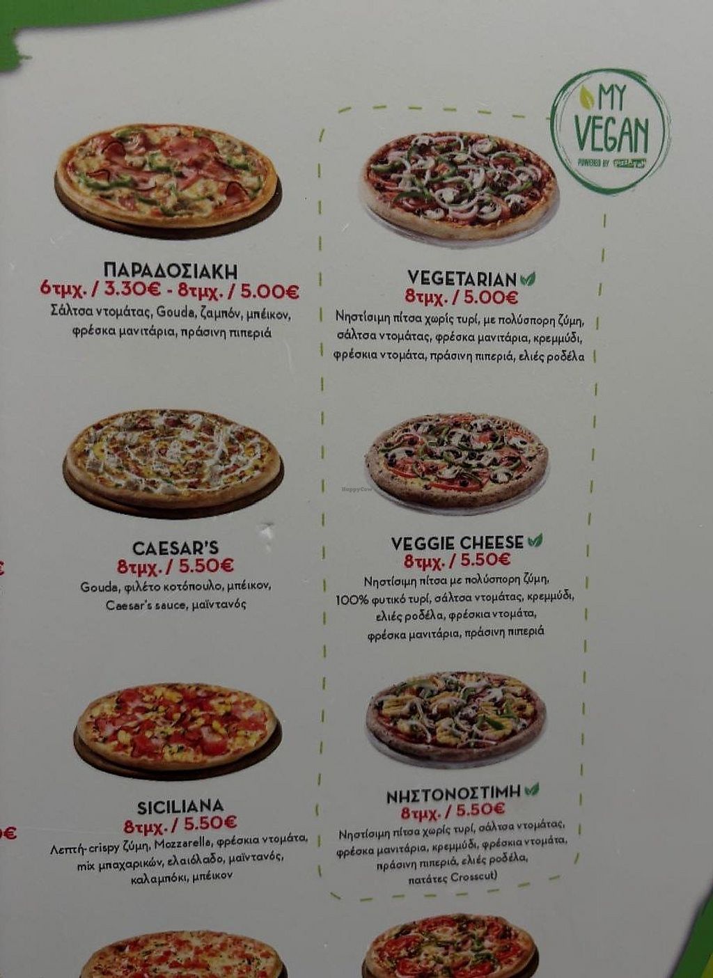 I didn't know what the size numbers meant on the vegan menu online, so I called to ask. Instead of answering my question, the employee told me I couldn't order online without a Greek phone number. My partner tried to create a delivery account on his phone, but was blocked from the website. So we walked almost a mile to the shop to order in person, waited 20 minutes, and carried the Plant Based Burger Pizza back. It was topped with BBQ sauce, vegan cheese, Beyond Meat burger, and crosscut potatoes (waffle fries). It was fine, but not worth all the effort.