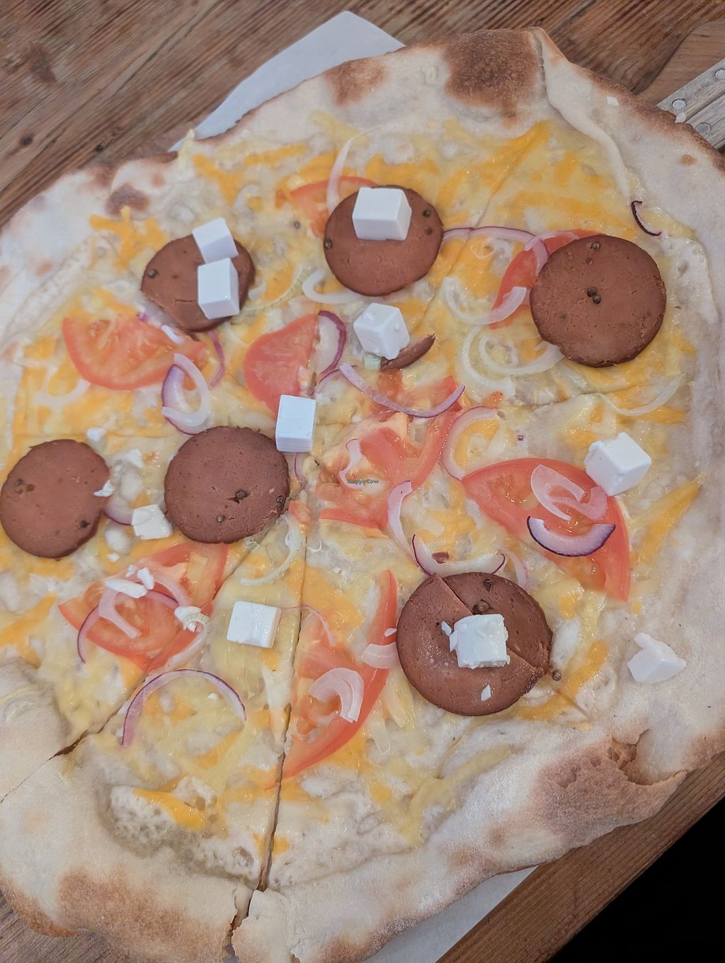 BEST vegan pizza I’ve ever had! I’ve been a vegan a very long time and I’ve never had vegan pizza this good. There is so much choice, a whole vegan menu from vegan feta, sausage, salami. Can’t rave about this enough
