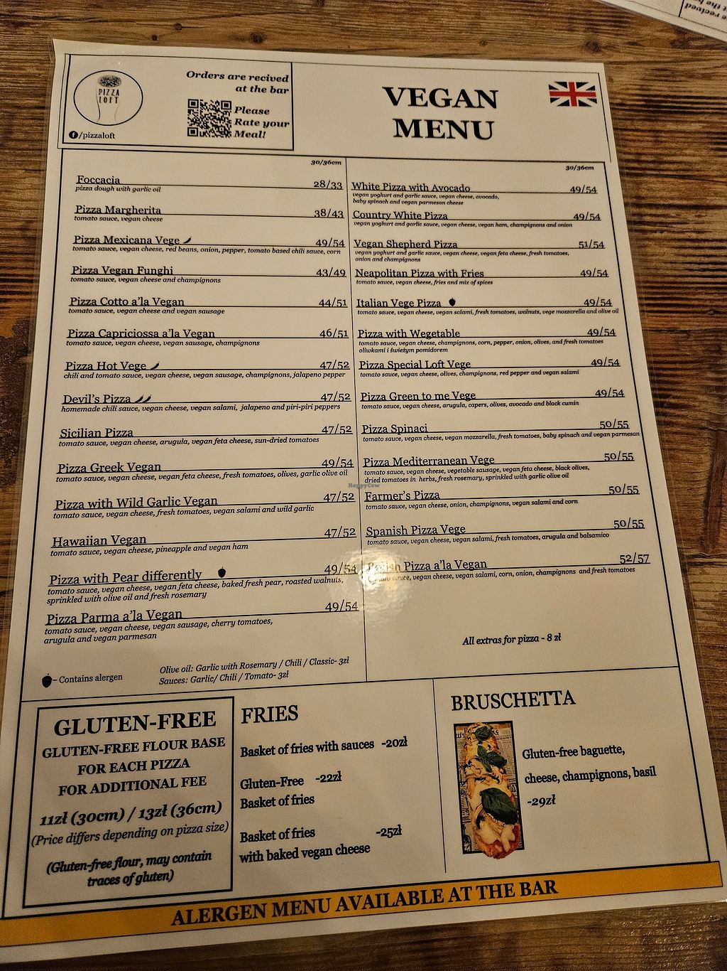 The vegan menu was massive with large variety of vegan pizzas. The polish one had nice salami but the pizzas themselves were average - i personally prefer thicker / sourdough pizzas. I’ve had better vegan cheese - it was a bit sickly. But good option to go with non vegans and decent prices. Wouldn’t go again
