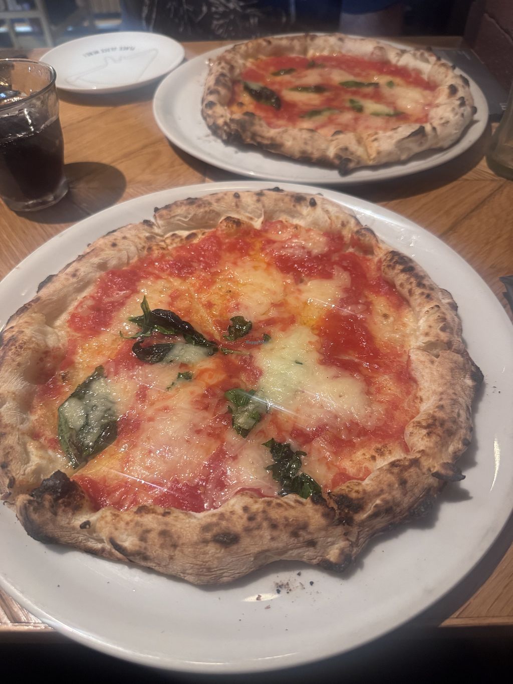 Their vegan pizzas, half margherita/half marinara, and their mushroom/…