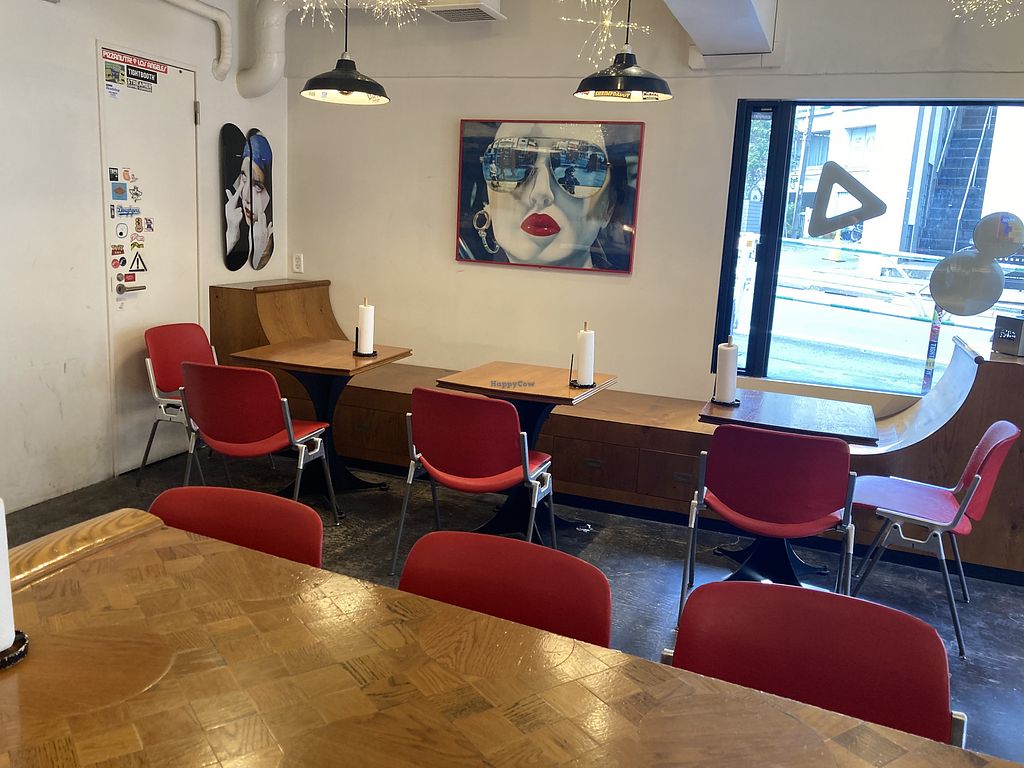 Several options for vegetarians and one vegan option. Thin pizza, nothing special but perfectly decent pizza. You order by the slice which is nice so you can get as much as you like. Reasonable prices, a bit calmer since it is off from the main Shibuya area. Relaxed atmosphere.