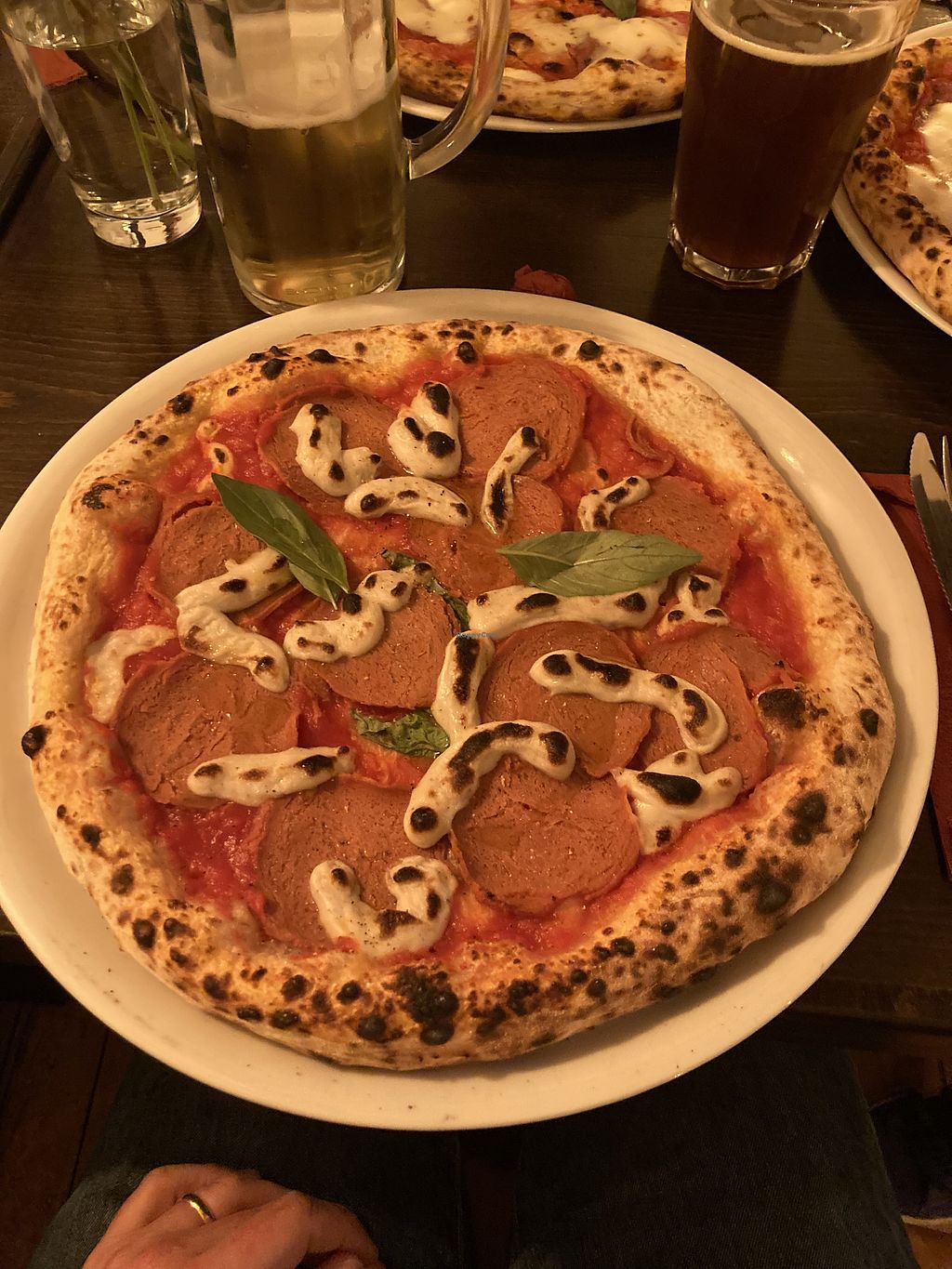 Several vegan options, clearly marked. I talked to the staff and they said the dough rests for 48 hours before baking. Excellent!