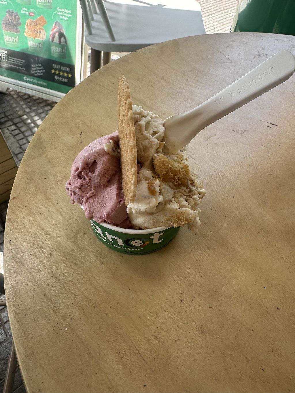 Love that its vegan. And they have a lot of choices. I tasted 4. I liked the strawberry cheesecake the most because it was the most tasty. Greek yoghurt was also tasty. They do a big scoop and i love that!