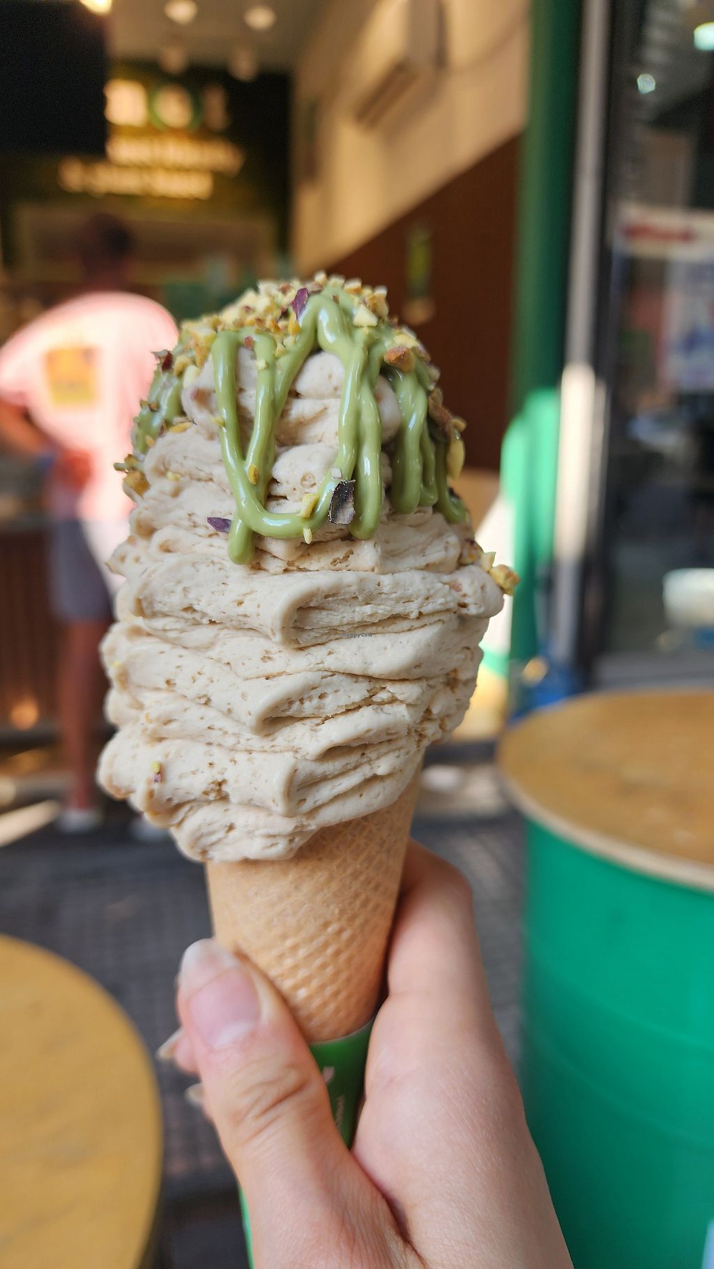 We ordered the pistachio soft serve with all the toppings. It was amazing, but the pistachio sauce was very sweet.