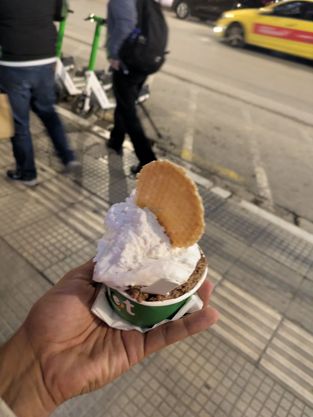 While visiting Athens my friends and I decided to pay this ice cream place a visit. The person who was working was very nice and the ice cream also tasted good. It is a little bit expensive and some flavors are a little to sweet. Not the best ice cream I ever had, but still pretty good!