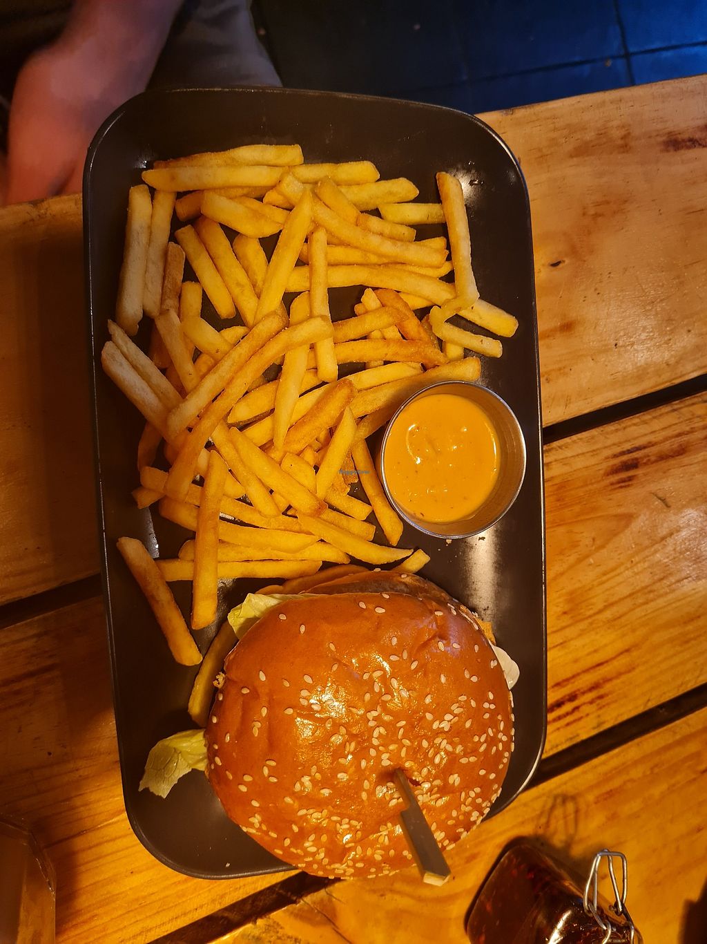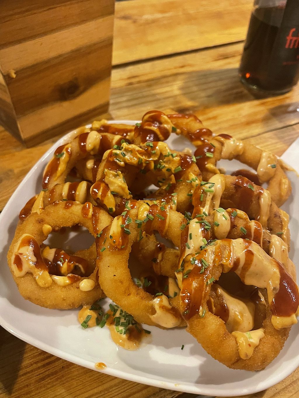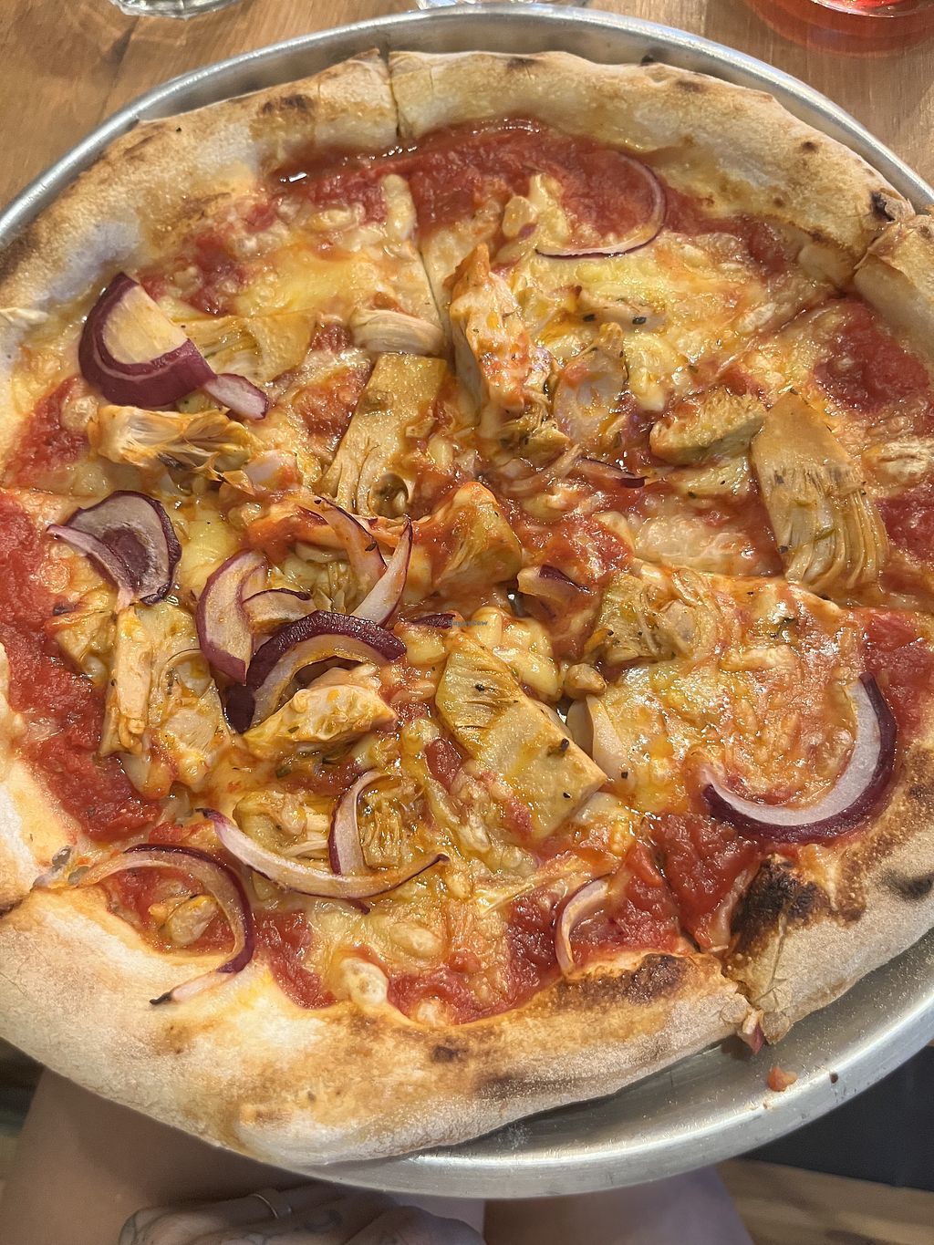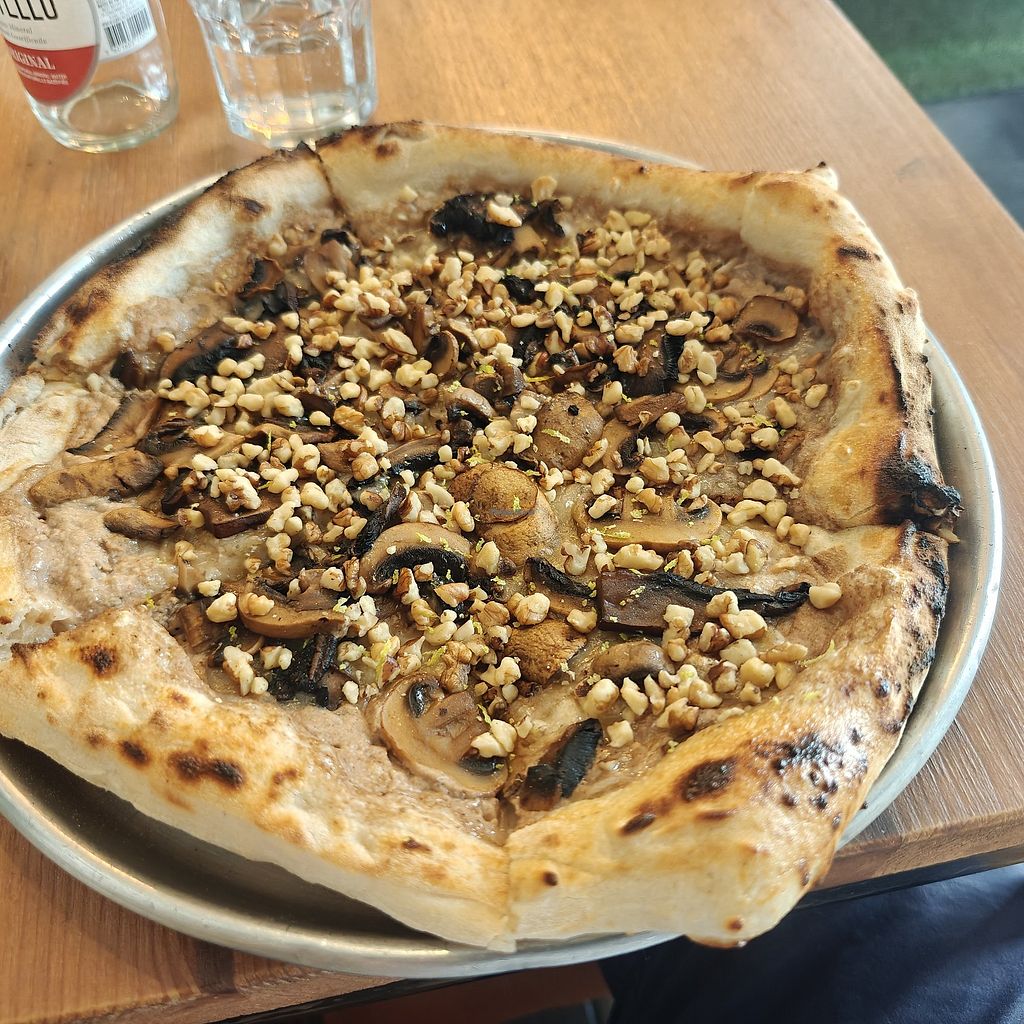 Clockwise L-R: chickpea tacos, spicy seitan tacos, garlic bread, mac'…
