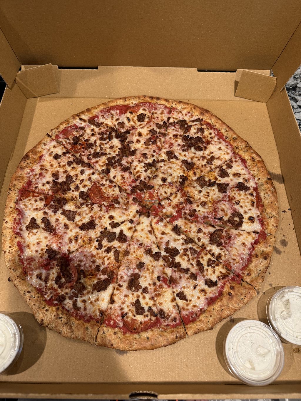 Ordered on door dash and it was perfect. Our first meat lovers pizza in YEARS and it did not disappoint. Also ordered fries and extra ranch.