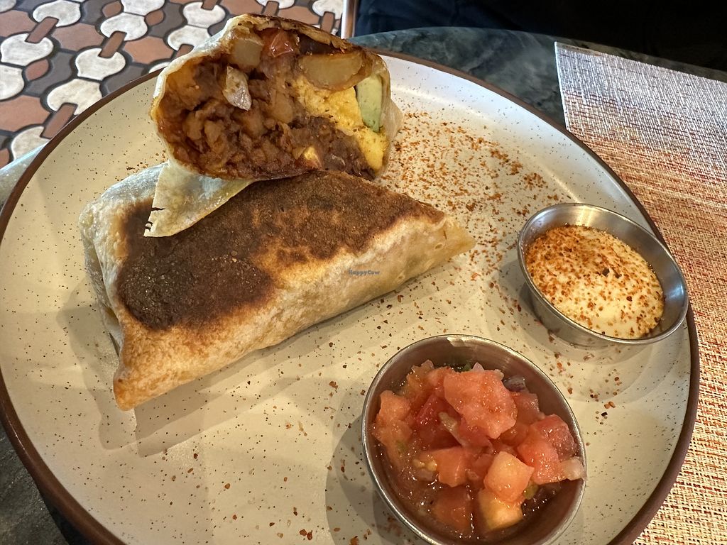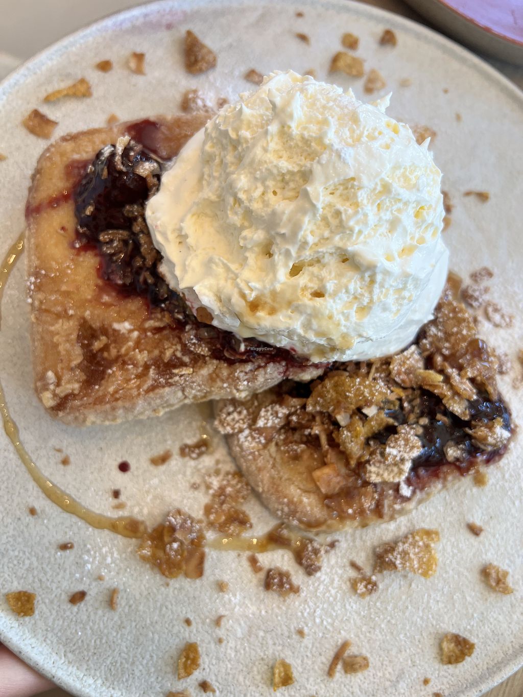 Read moreThe food comes out as made. The tuna wasabi nachos were delicious and unique! The French toast comes with a heaping pile of cream! It kind of tastes like a funnel cake. The truffle udon noodles were super great. I went with non vegans and they really liked the b fast burrito.