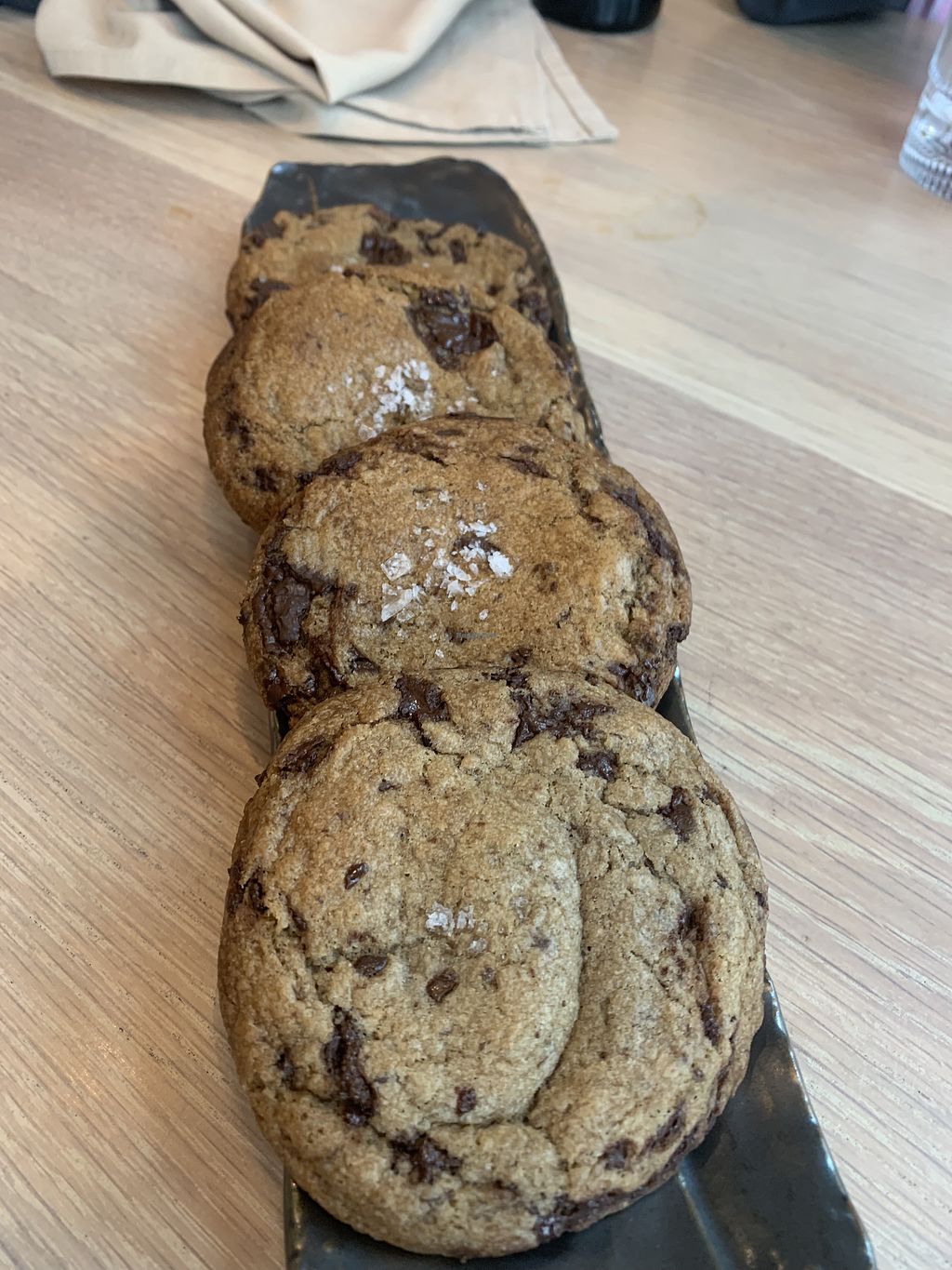 When we finished our meal, we were brought out a plate of three, oh so decadent, Chocolate Chip cookies. They were gooey on the inside and crunchy on the outside.