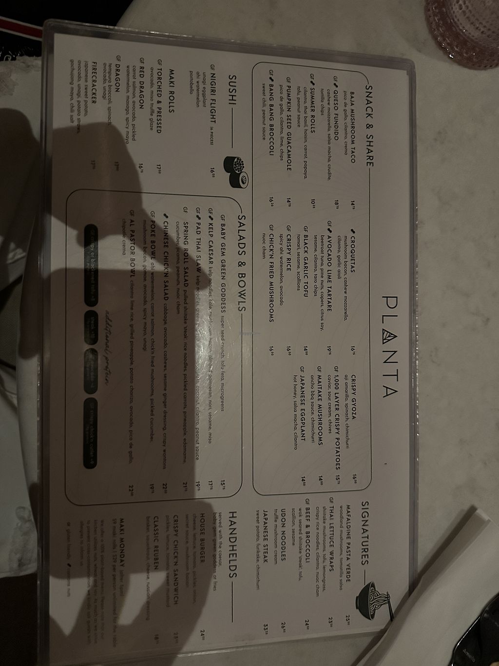 What a special treat! I chose Planta for my birthday dinner with my meat eater friends. They were all blown away by how nice and delicious a vegan restaurant could be. Everything I've had on the menu has been excellent. I also love their focus on sustainability.