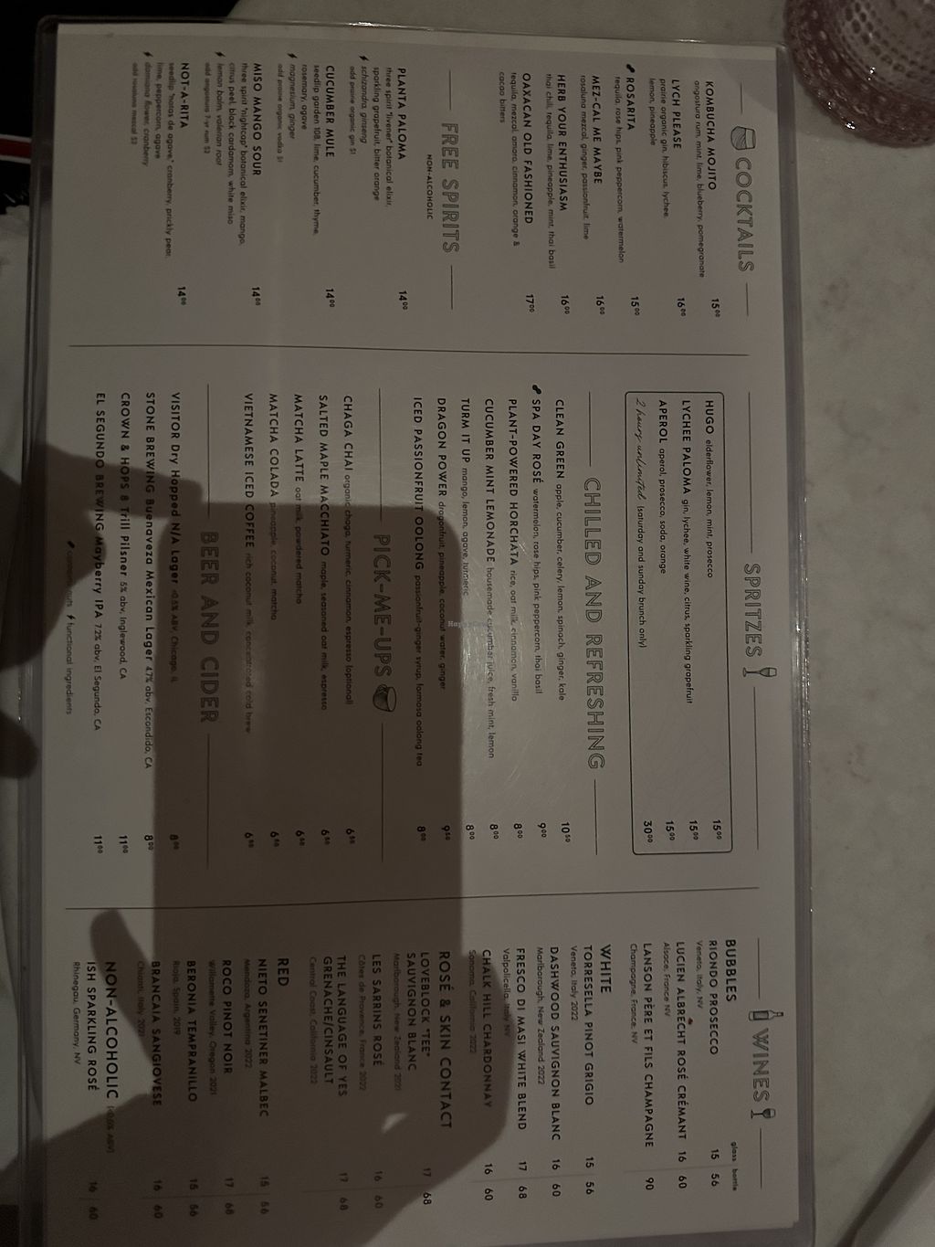 Trader Joe’s next door has picnic tables. Nothing like Planta in Brentwood (which has great pizza). Outdoor seating is a hot commodity here. The food is bland and unfilling. Half the menu here is drinks, despite the name “Cocina.” They do not have the oven We had the “lobster” (heart of palm) rolls, on par with Wienerschnitzel. We also had the 5 croquetas, which were decent, but not 16 dollars decent. The restaurants layout is also very unsettling, constantly people moving around you in the front. No view unless ur in the very back.