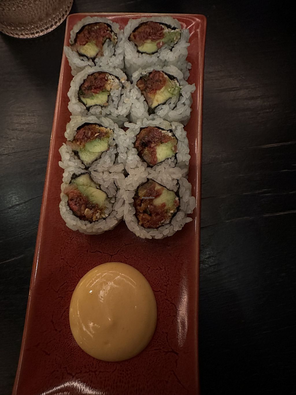 This place was incredible!! My favorite was the eggplant nigiri. Also ordered the crab rangoon dip, the lettuce wraps (both not pictured) and the firecracker roll. Everything was delicious and not as expensive as I thought it would be.