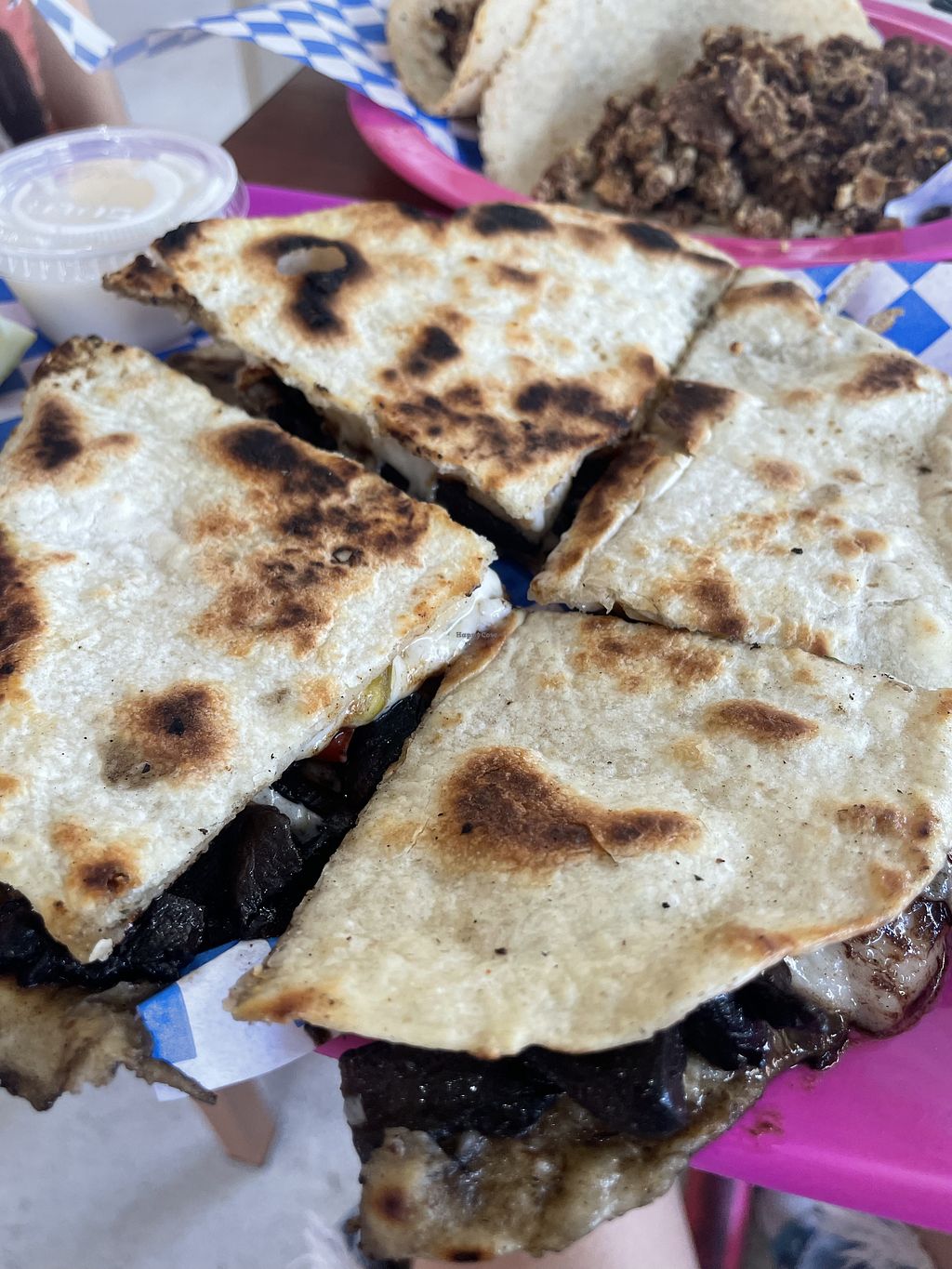 I had the vegan quesadilla. It was full of vegan cheese and meat substitute. It was good although lacking in vegetables. I also had a watermelon agua fresca which was sweet and had real fruit in it.