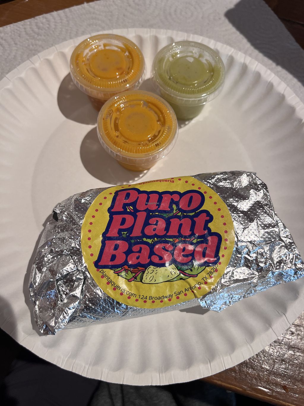 Read moresolo. I’m in San Antonio for a convention, and believe me, getting my crowd to have a vegan meal is not going to happen. Anyway, bottom line, it was worth the walk! I had the four mini tacos, two with portobello, and two with carne asada. I also got a side of the charro beans. I basically poured the piping hot beans all over the tacos and ate them like an entree. I am a person who likes to finish my food, and I will sometimes stuff myself to misery in the process. I could not finish my meal, it was just too much! The food was very tasty, though a little heavy on the salt. I deducted a star because I just don’t like eating with disposable plasticware. It’s a small place, and I went just before 5:00 pm and was the only one there. I was glad to see there was a dine-in option. Prices were fair, I think it was $21 including 20% tip. The emailed receipt has not made it to my inbox yet.