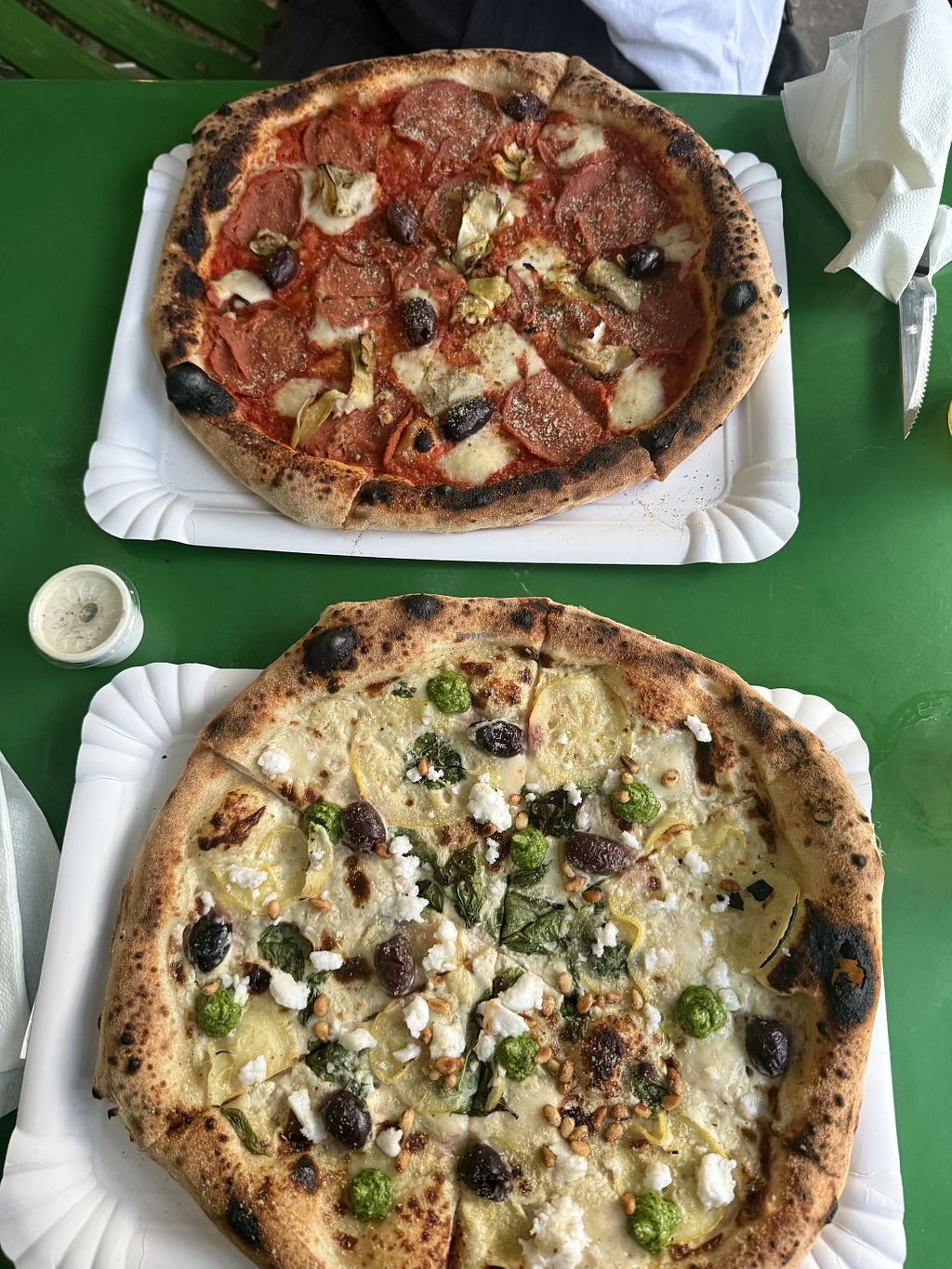 This is the pizza of my dreams. The dough is thin and just right, and the toppings are perfectly matched and tasty! We had the cashew mozzarella pizza and the zucchini pizza and both were absolutely mouthwatering!