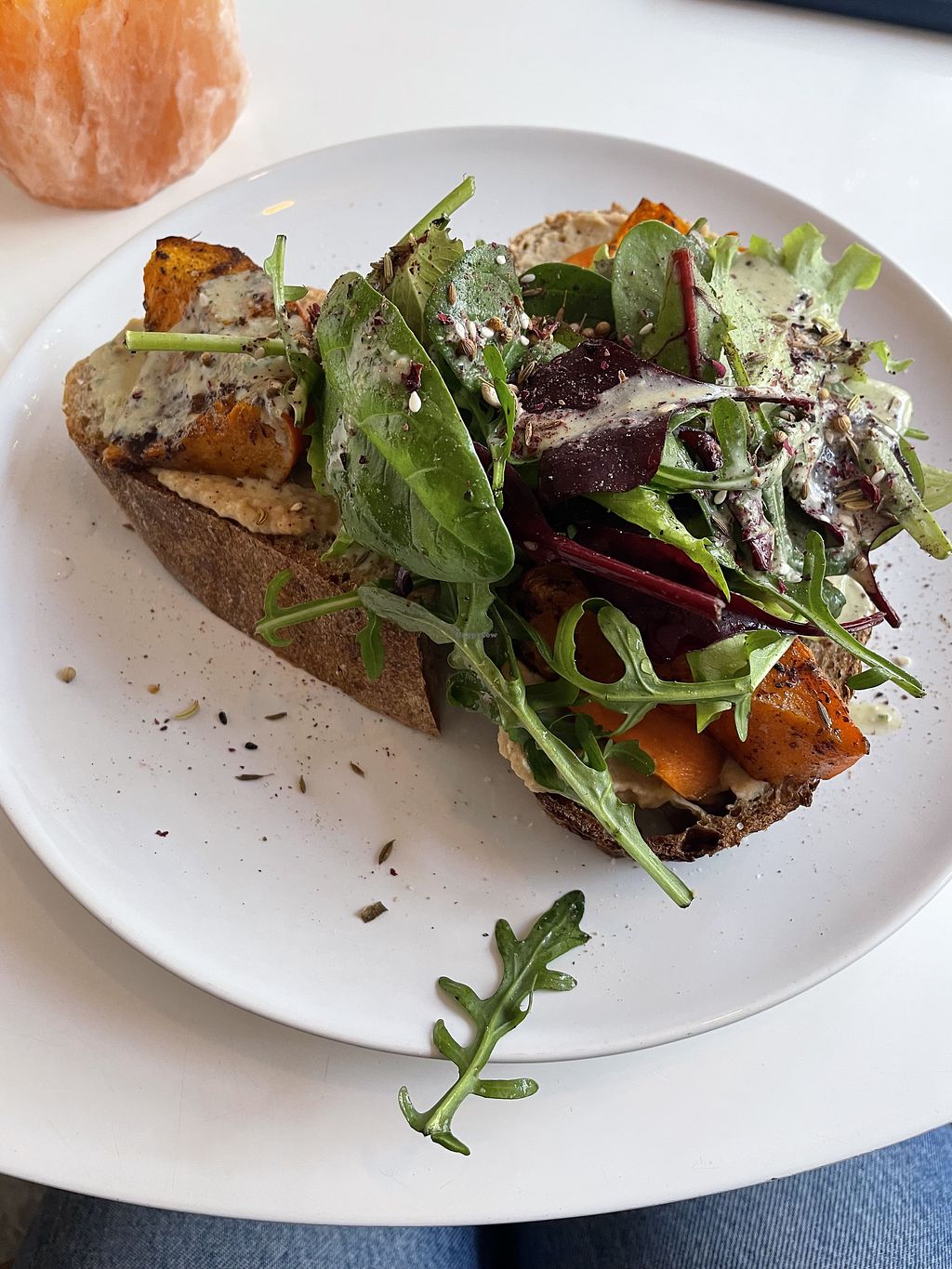 Sandwich avocado (top), Sandwich aubergine (bottom), Chico latte, Capp…