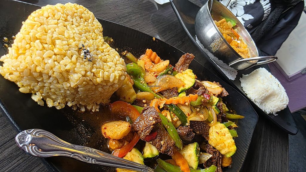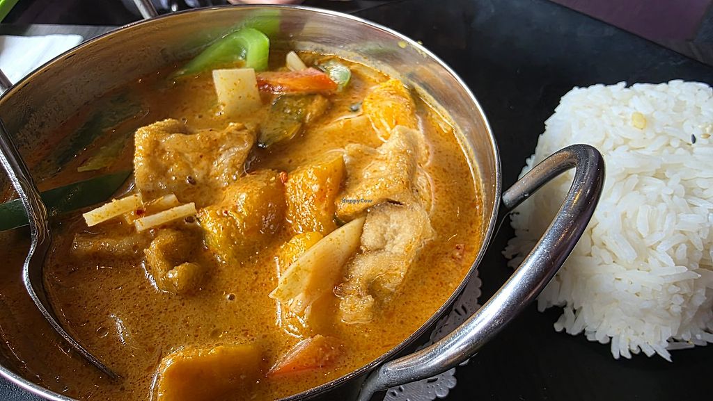 Loved the food. My wife said they have less oil than other Thai restaurants. The flavor was outstanding 👌🏾 Rice was okay; she had white, I had brown. My Cashew Mock Duck was good and she had the Pumpkin Curry 🍛
