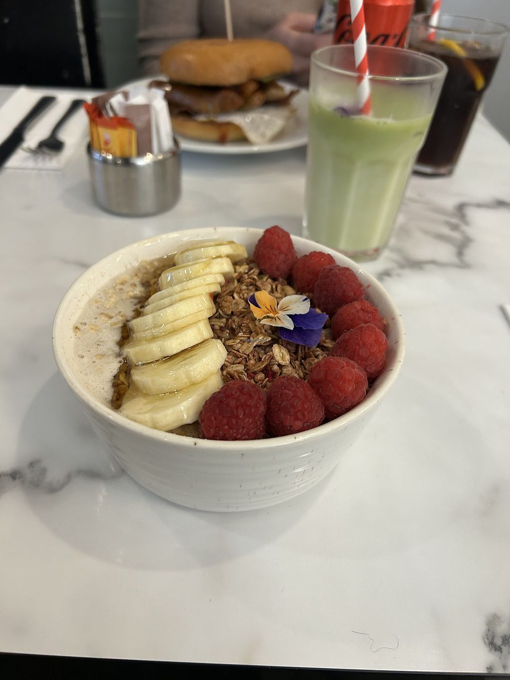 Had a lively porridge and matcha here