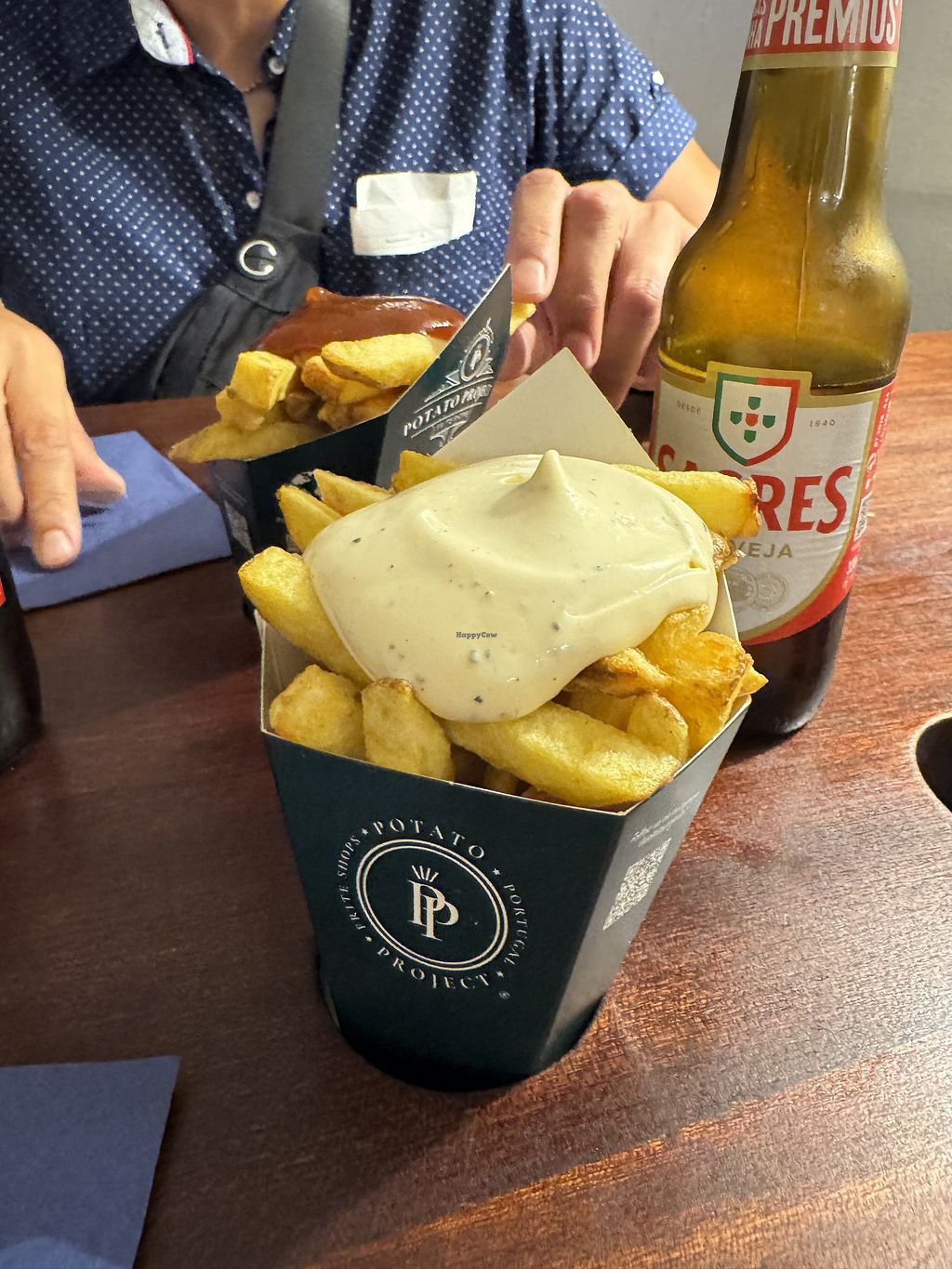 Fresh and well fried fries, with great vegan toppings like fresh onion and vegan mayo. Too lightly salted like most fries in Lisbon.