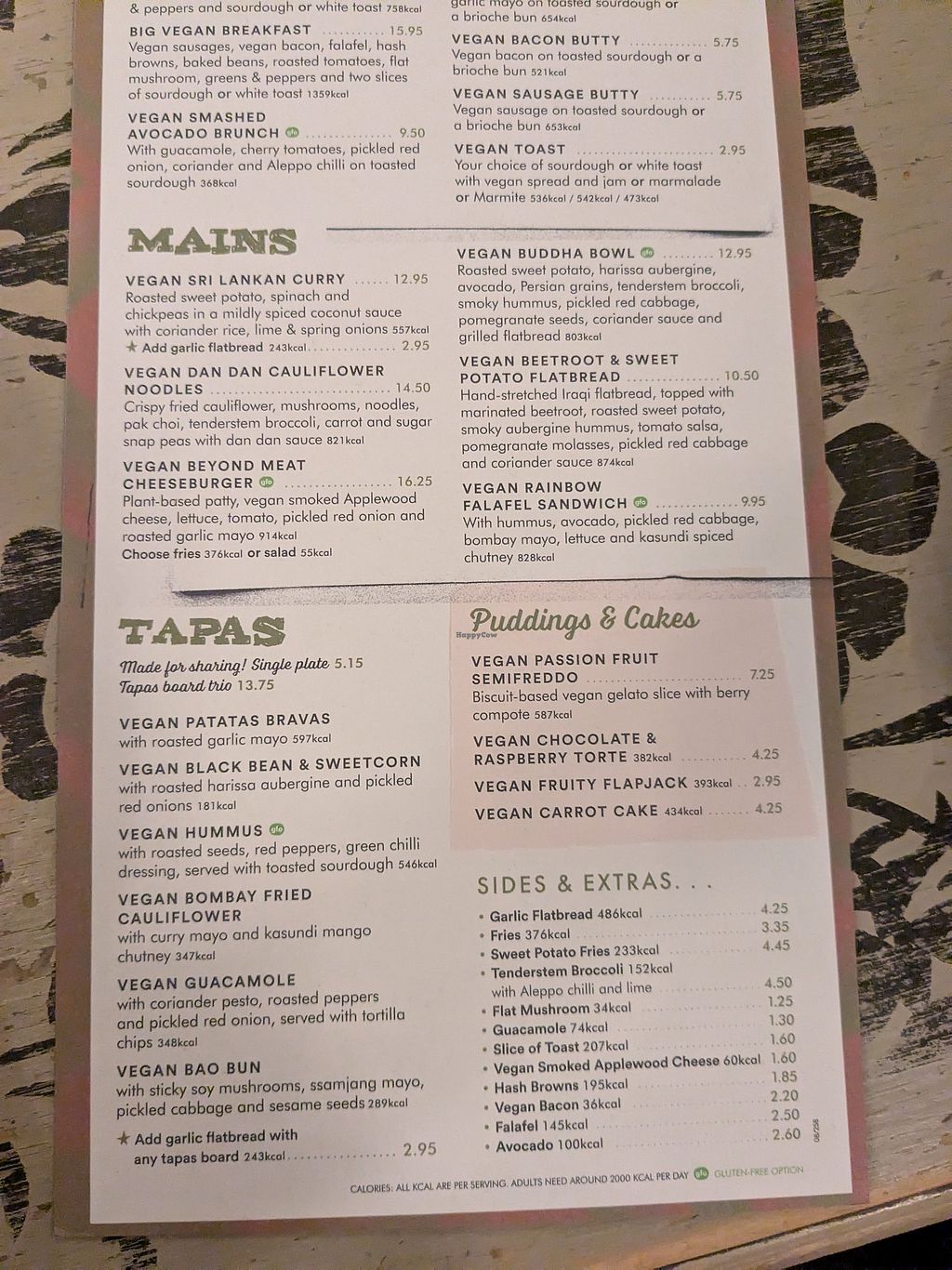 Really enjoyed the food here, had the vegan Beyond Meat burger and it was really delicious, they even had vegan mayo!! They had run out of the vegan cake option I wanted which was a shame but won’t hesitate to go back and would recommend.