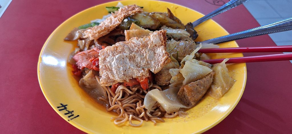 Saw everyone is queueing and ordering their bee hoon, so i decided to take away their bee hoon mee with 3 dishes ($3 only), surprisingly their bee hoon got very strong wok-hei, very delicious, mee tastes normal. They do sell vegetarian chicken rice on every Thursday and Sunday as well, close on Saturday.