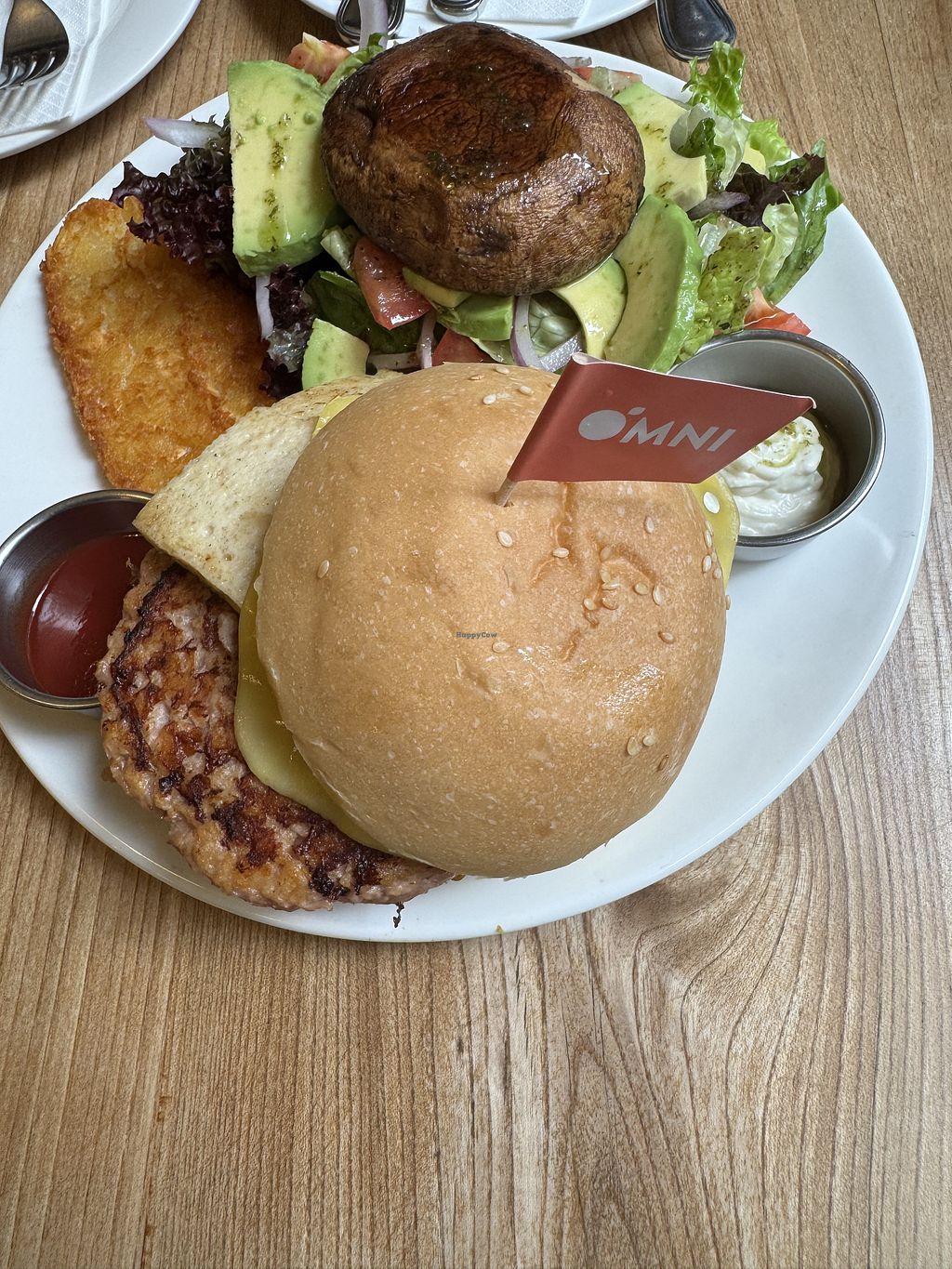 The Omni Pork sandwich was good. Our first Omni product to taste. The sandwich was good, burger well cooked. The bread and toppings were good and the salad, dressing pro and hash brown was perfect.