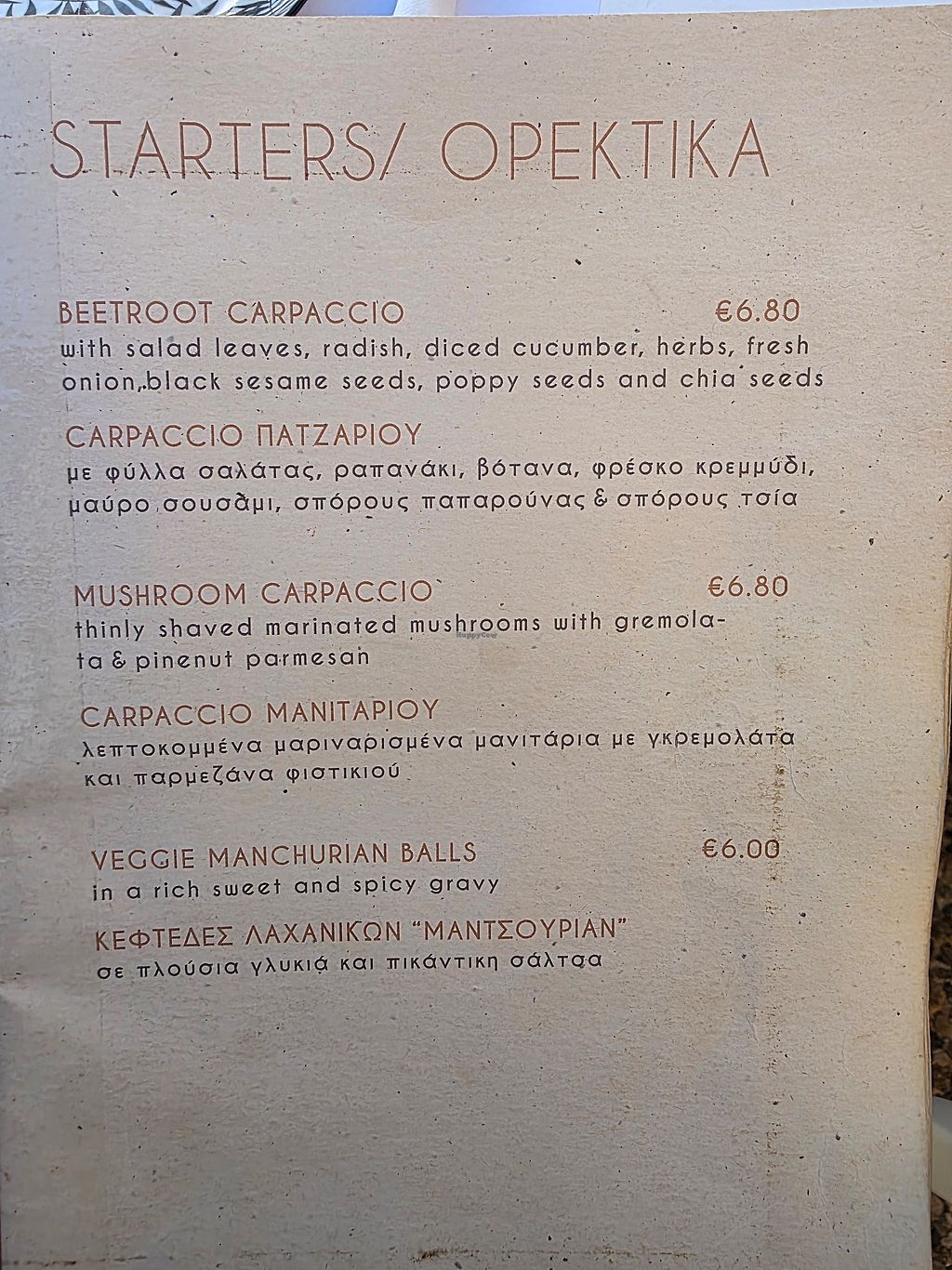 Amazing food here and so happy to find a fully vegan restaurant in the area! We walked 2 hours to get there and it was worth it 😅 carrot fritters and polenta triangles to start then mousakka and beef stew for main. Sad I couldn't fit in a dessert but will be going back again before we leave for sure! Fantastic food and lovely staff ❤️