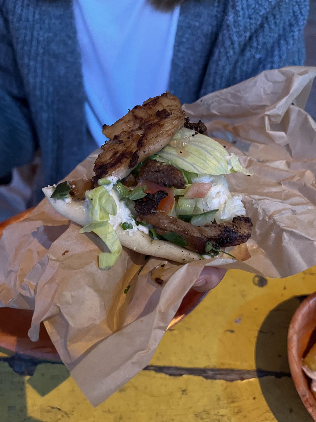 Lovely 100% plant based menu. We had the coxinha, pita gyros & the black flag burger. Love this place!!