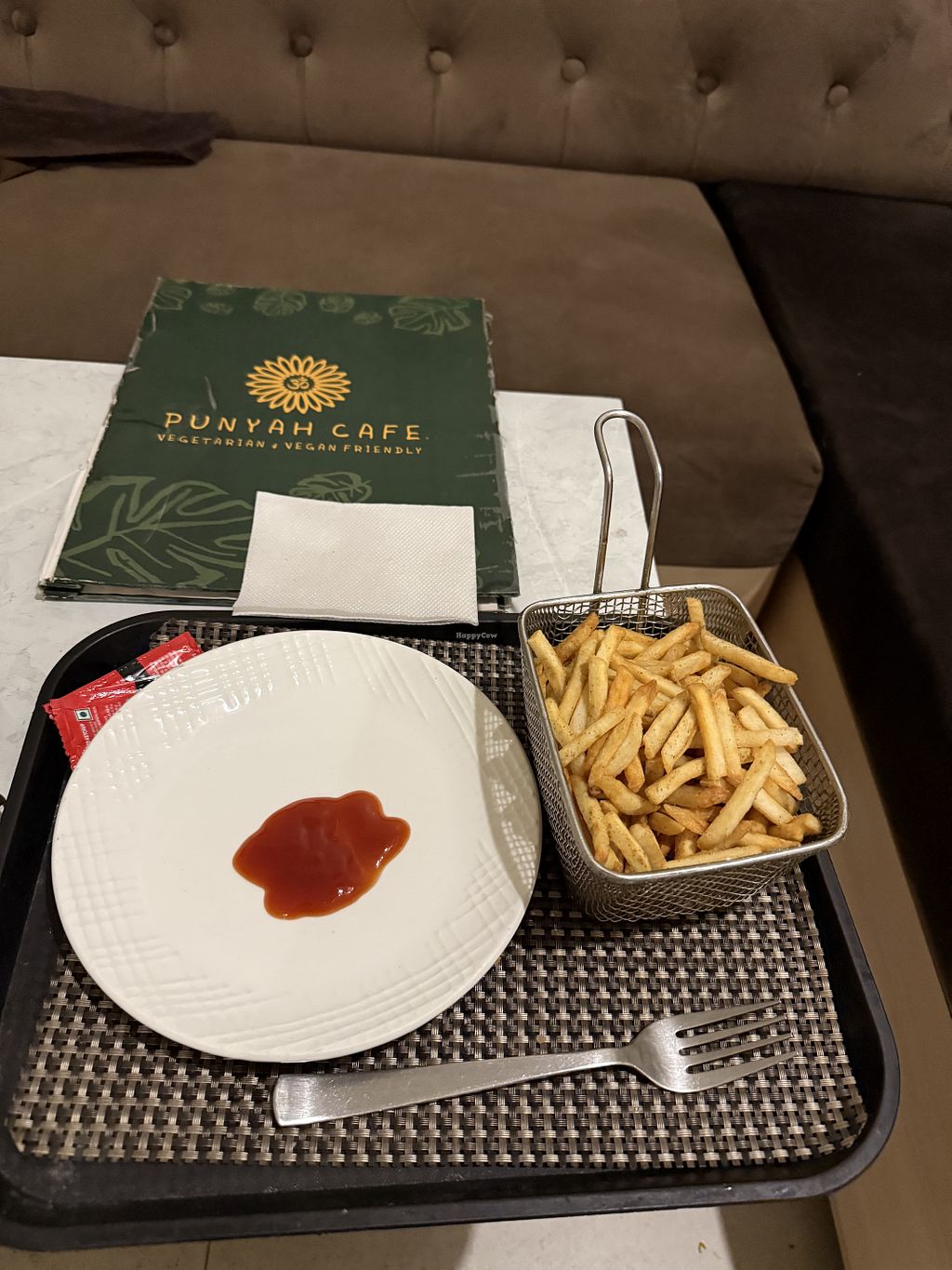 Punyah is a hotel restaurant and has a yoga shala. They have a few vegan options. The pesto pasta & kitchari were delicious, their other food is mostly quite boring and doesn’t have a lot of taste. Still nice that they have some options and they deliver to your room. :)