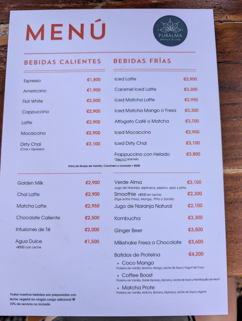 I visited PURALMA a couple of times while visiting San José. I tried the pupusas on one occasion (very yummy) and a smoothie bowl on my second visit which was delicious and chockablock full of goodness. I also bought some items to go; the raw snickers bar (amazing!) and the empanadas which were also yummy. The service was excellent too.