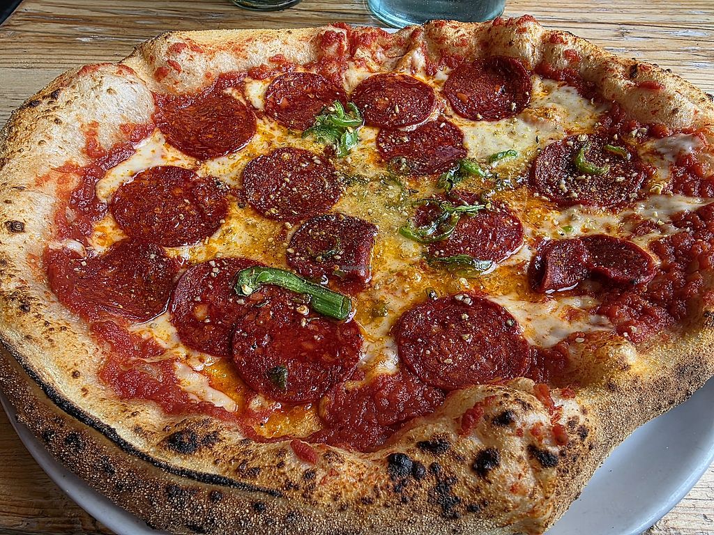 I had the pepperoni . It wasn’t good. You can get a better frozen pizza than this. Very disappointed . Crosta and mollica or dr oetker vegan pizzas are better .. Was too noisy for me and there was a hair in my OJ. Don’t want to slate any vegan place but had heard these were good Pizzas .. the one I had was def not.