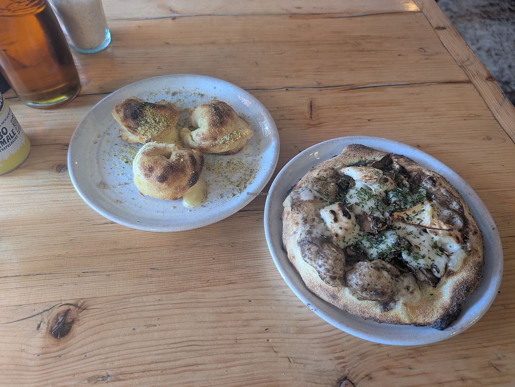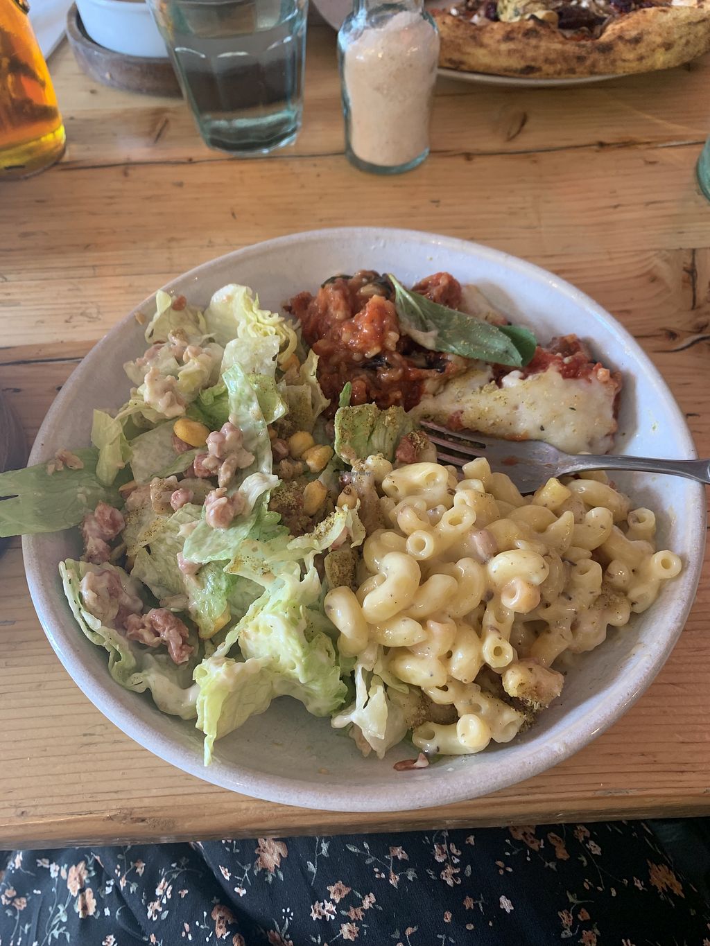 Mac & cheese, parmigiana & caesar salad (all GF) and veggie pizza