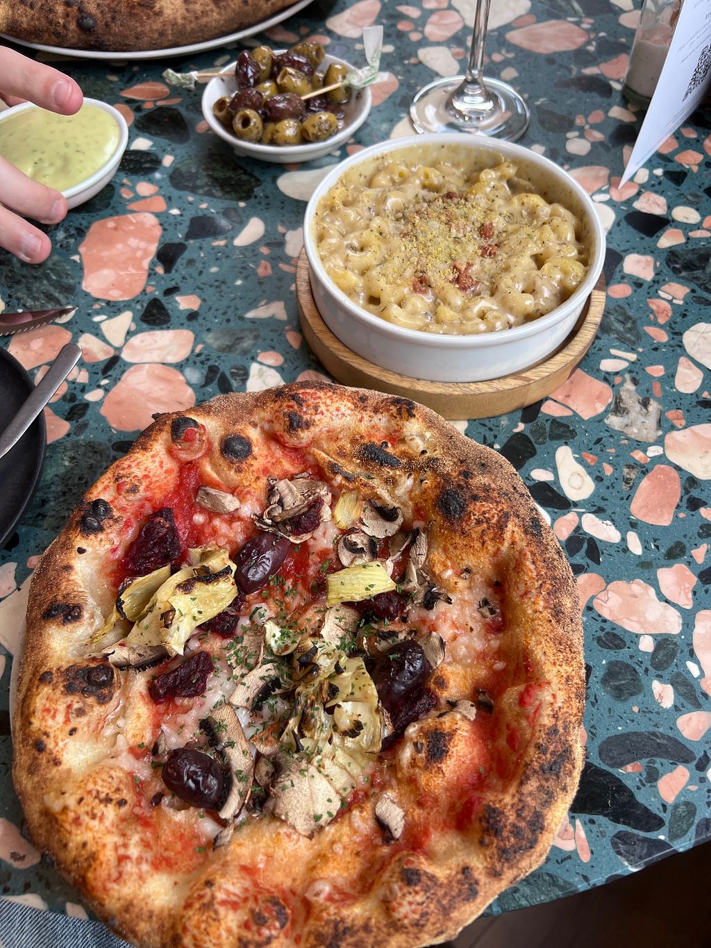 We had the lunch set menu; small pizza, small course and a drink at 15£. We added some small courses and everything was delicious. The sourdough base was incredible, the doughballs and garlic bread were the winners of the meal. A must stop.