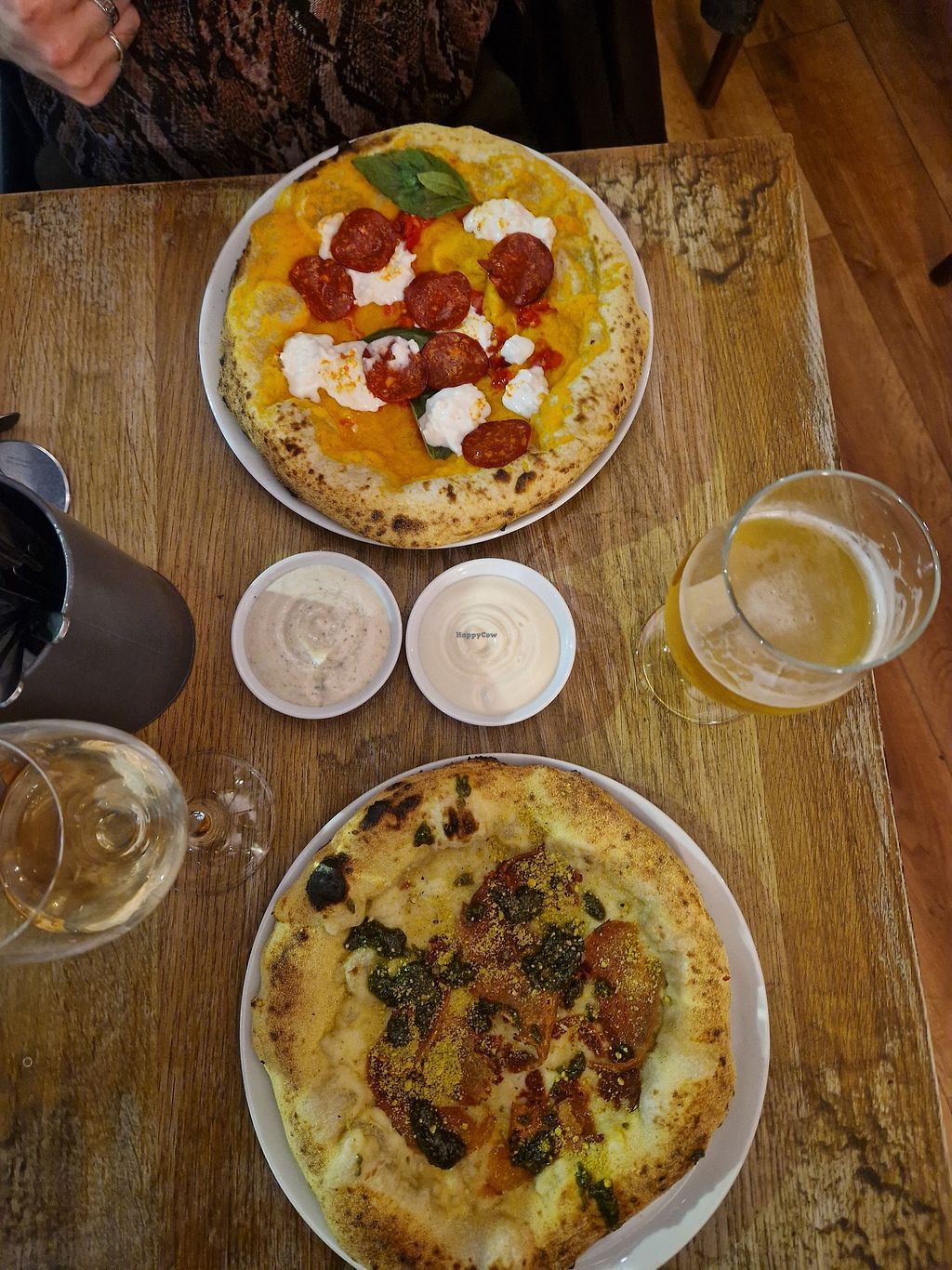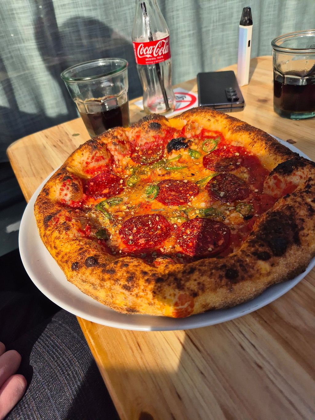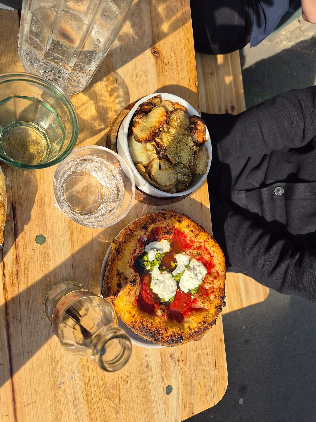 Came here with work colleagues and everyone had a good lunch. The pizzas were really tasty and filling, easily enough by themselves. One of the few vegan pizzas I've had not ruined by terrible fake cheese, and the dough was really good too. The staff were friendly and the service was pretty good. Would definitely look to come here again for a more social meal in future.