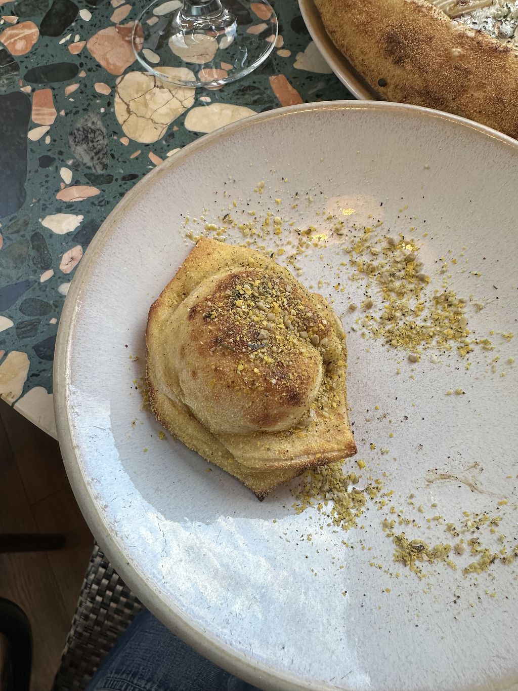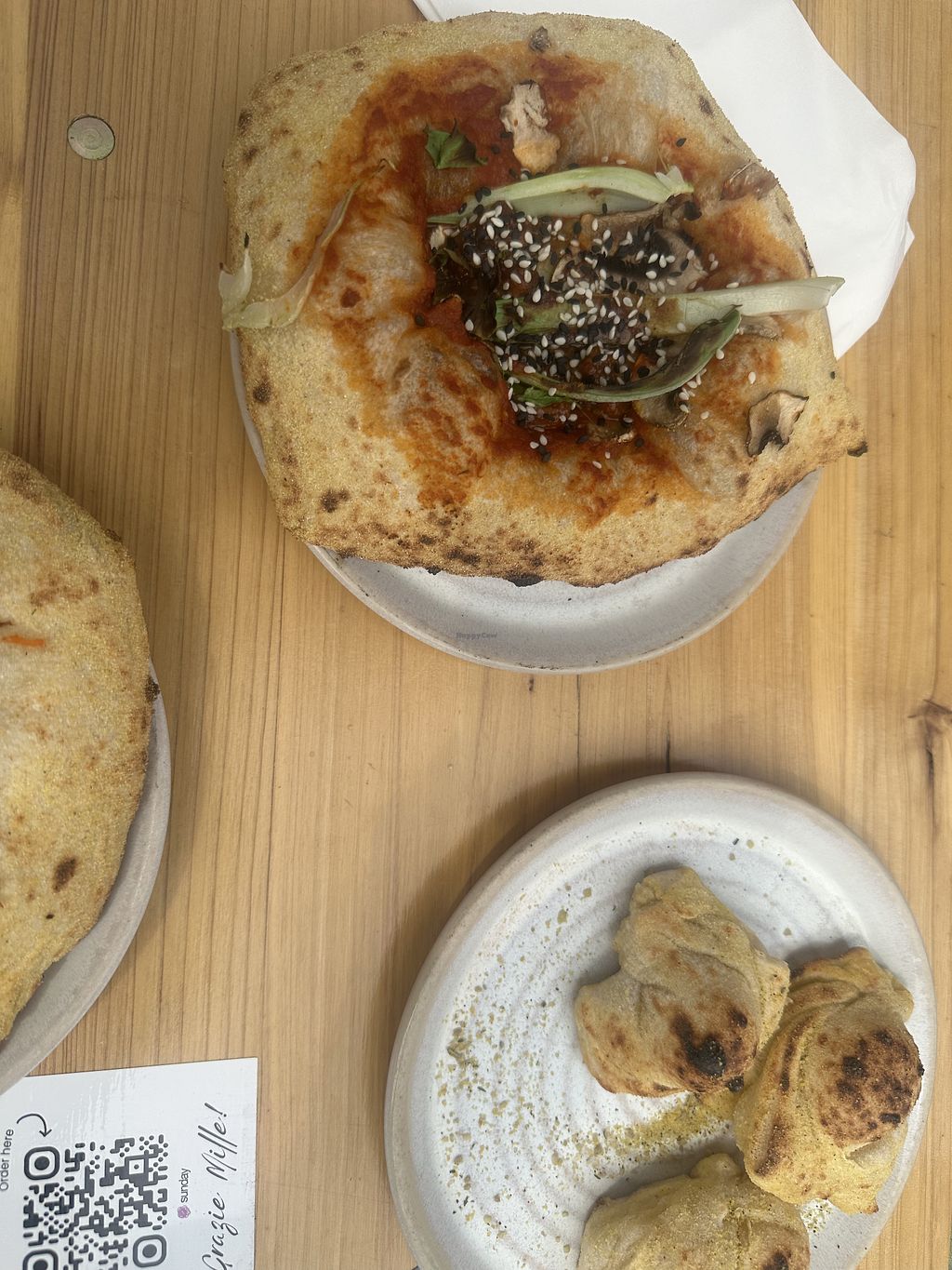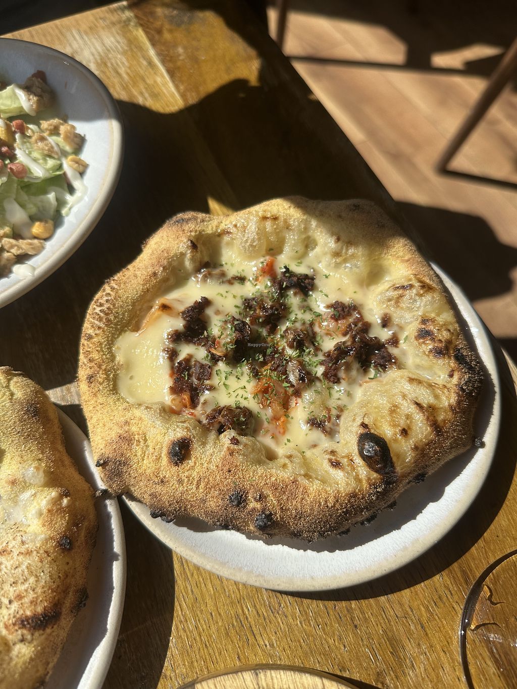 I was so happy when the vegan cheese was actually good. The pizzadough was also quite nice, seems selfmade aswell. The pizzas are creative and very tasty.