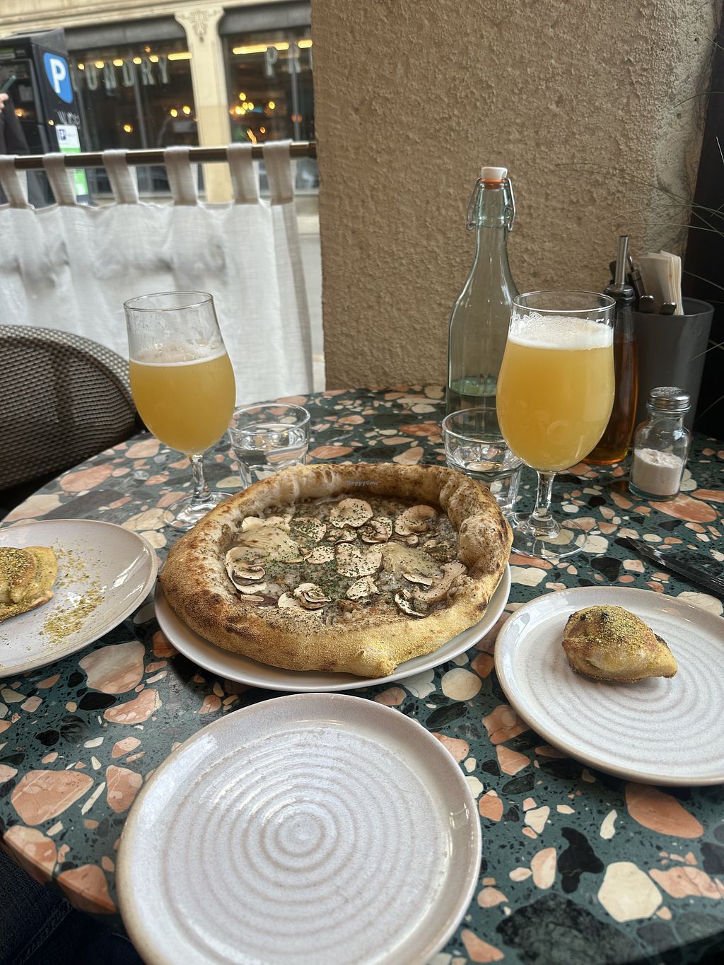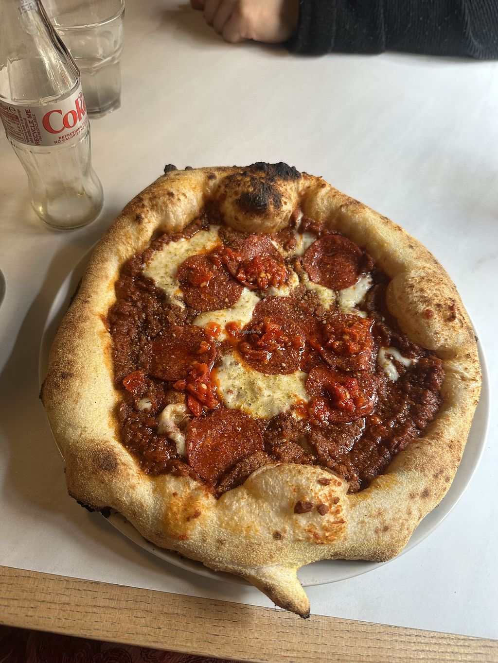 We had amazing sourdough pizzas here. One margherita with vegan pepperoni and one four seasons. Both delicious. Lovely staff too and there was also a DJ on Friday night.