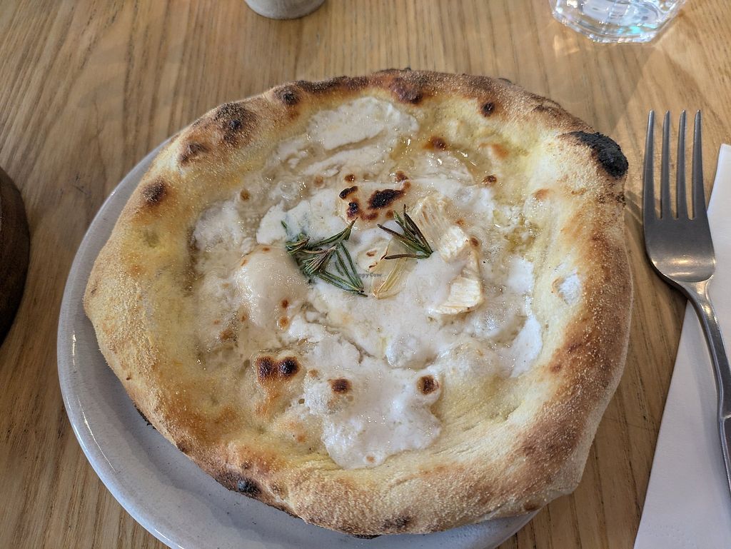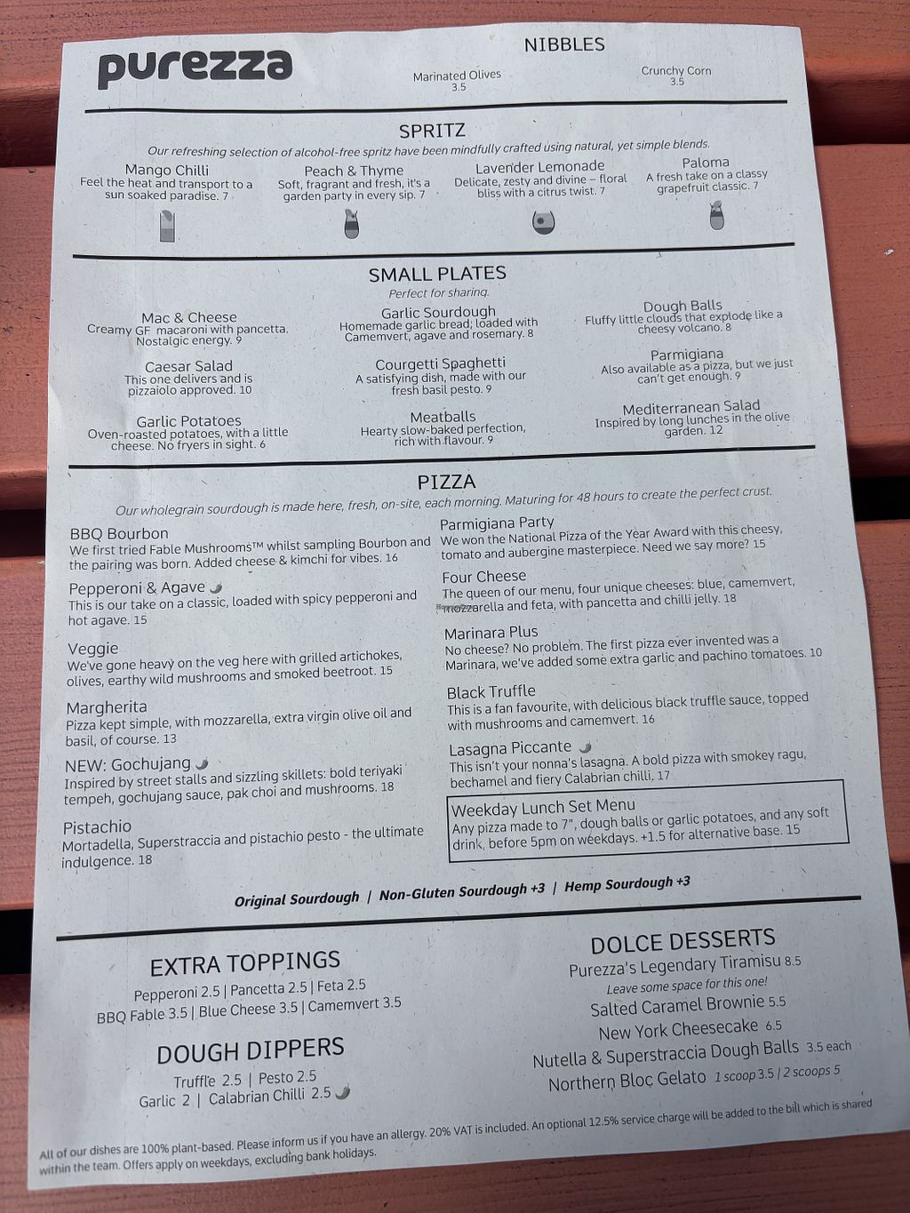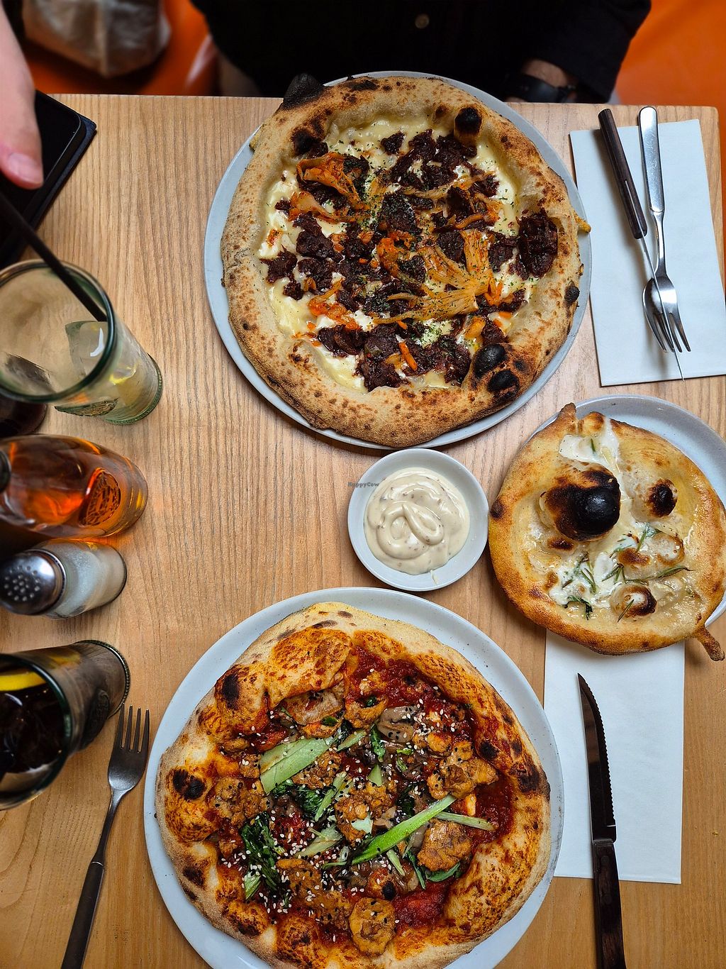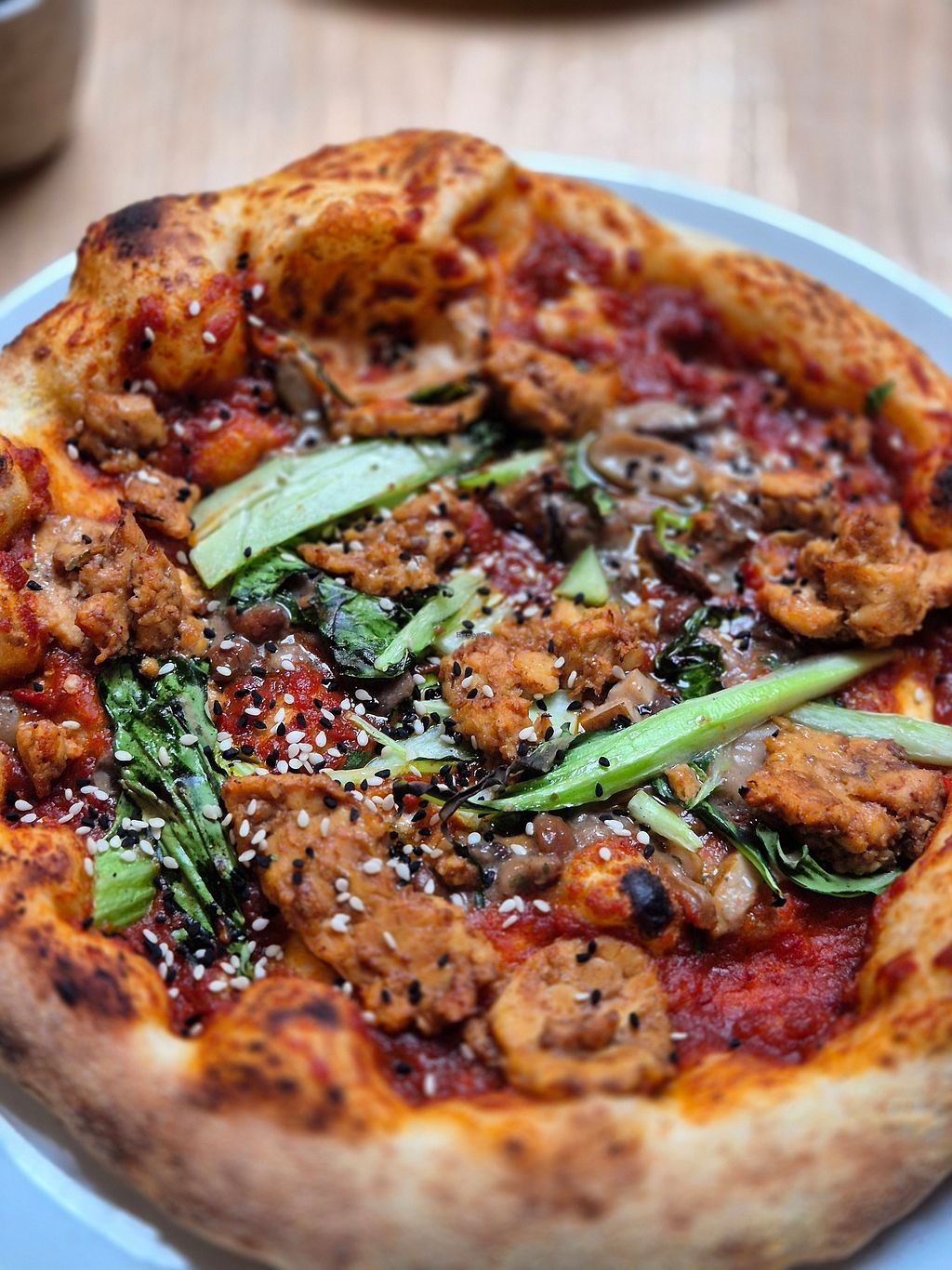 Margherita pizza, pistachio cream pizza, meatballs and Mac and cheese.