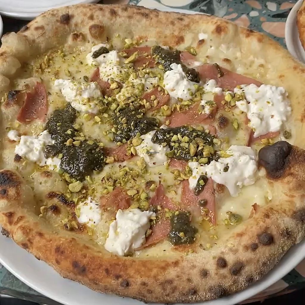 Thin sourdough base, baked in Napolitan style oven super quickly. Therefore the service time is amazing.