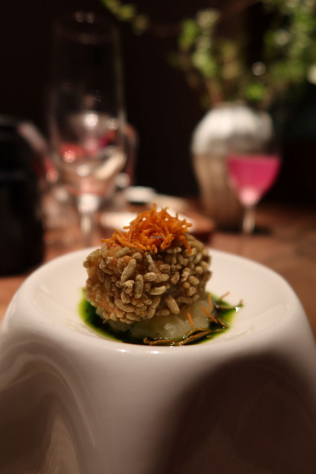 Read moreThe rose drink was the clear highlight for us — really lovely. The fried taro and pumpkin seeds were also not bad. But the jelly eggplant was my least favorite; the texture just didn’t work for me at all.