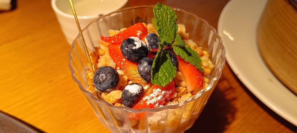 I was excited to see that they have vegan soup dumplings. I also highly recommend the three mushroom dish and the fried rice. Many beautiful dessert options as well.