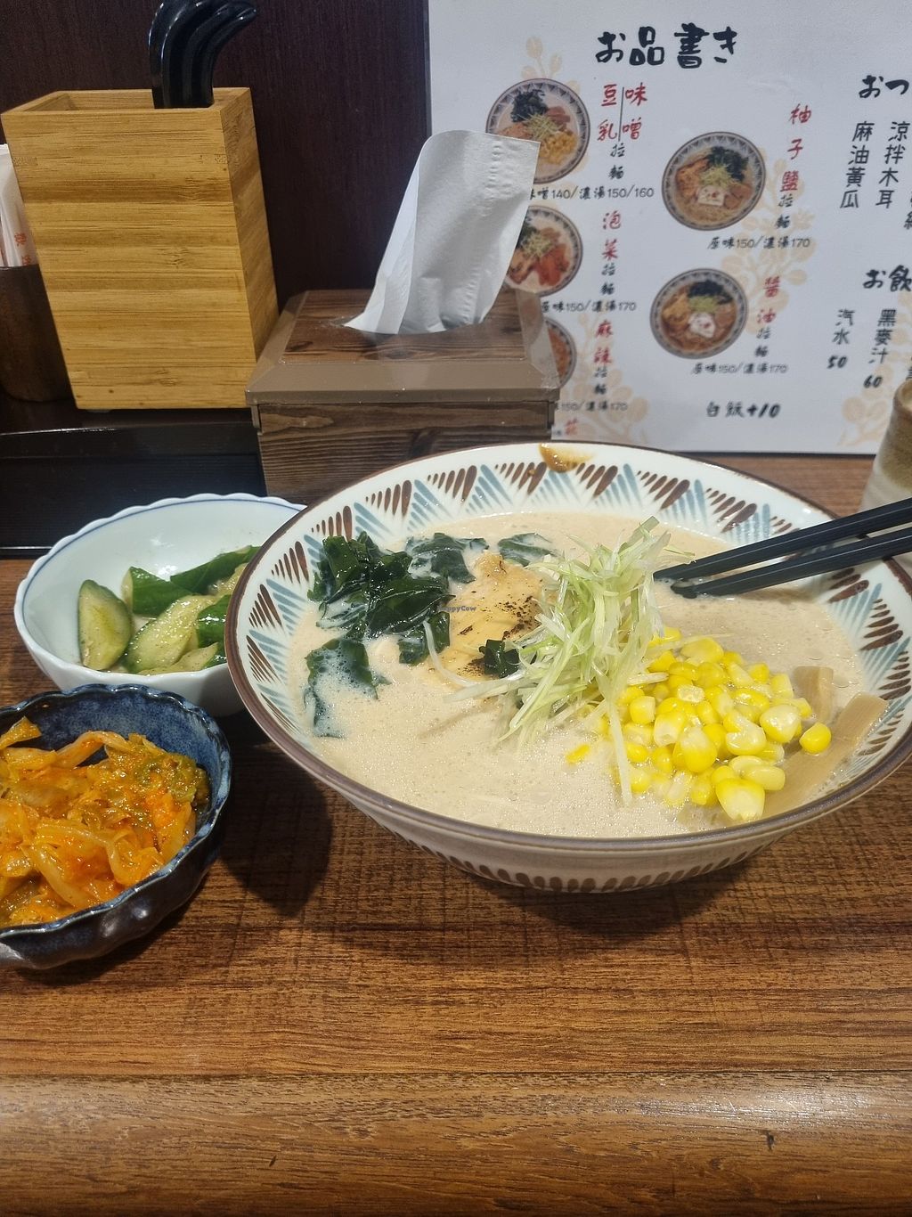 Very tasty wood ear mushroom salad and kimchi soy milk ramen. Nice relaxed local feel. Really enjoyed it.