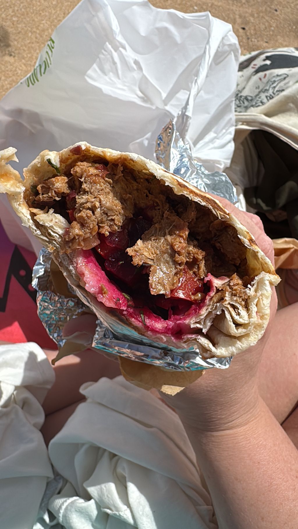 Very delicious, fresh, healthy & filling food! I really recommend a visit here, my top choice in Santa Cruz for lunch and take the food to the beach. I had a seitan kebab with lots of different salad in it (they have falafel and fake meats too) and a focaccia & dark chocolate muffin too. You can get Buddha bowls too. Big portions & great value for money. Staff are friendly & really helpful if you need help to know what everything is in English😄I think it’s only open 10-2, and the location looks wrong on the happy cow map, but address is correct - it’s in the market!
