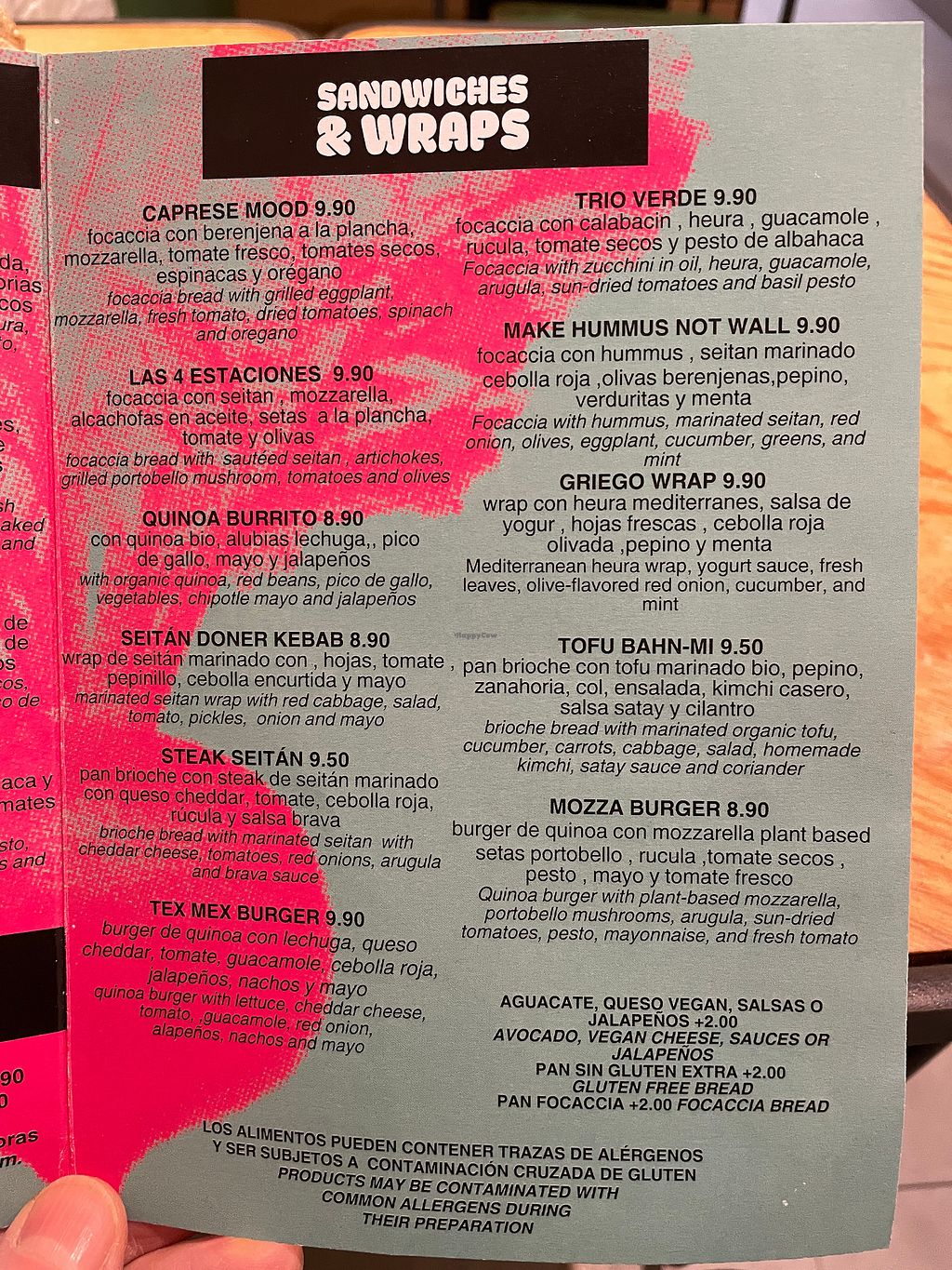 Very good food!! Several sandwiches and wraps. Very delicious and a cute small place. Vegan kebab wraps was 10/10 🫶🏻