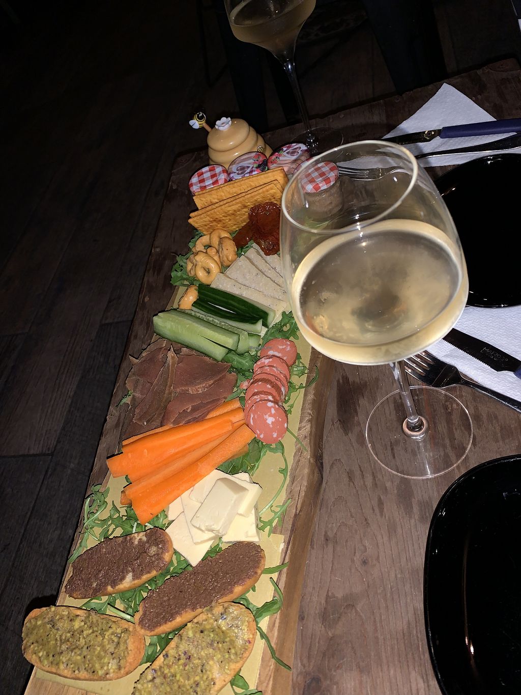 Very tasty vegan delicacies, wraps and sandwiches all accompanied by a very good wine. Nice and cozy place, attentive staff and unique kindness. We will definitely be back!