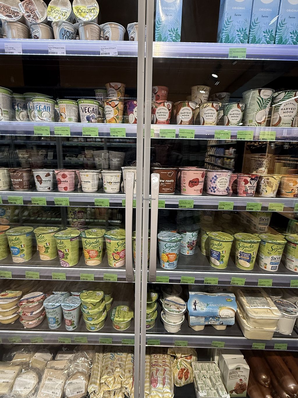 This store has an excellent system for marking vegan items: The prices are on green labels. Much better than most competitors. The selection is extensive, too, and a bistro is part of the store. Highly recommended.