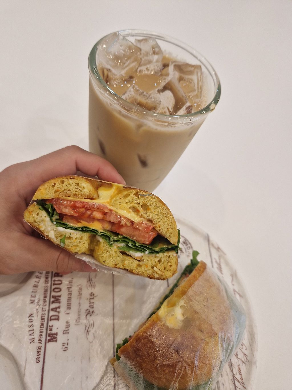I had a very tasty bagel with vegan cheese and patty, a warm ginger lemon tea, and the atmosphere is so nice and cosy! 100% recommend