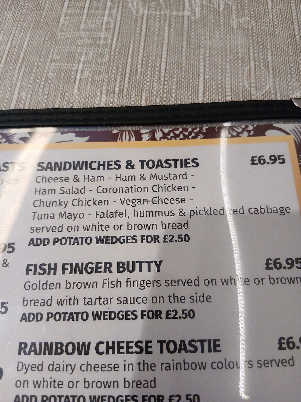 Had the Beans on Toast with Vegan Cheeze which was nice. My partner had the Rainbow Cheese Toastie (which was non vegan).