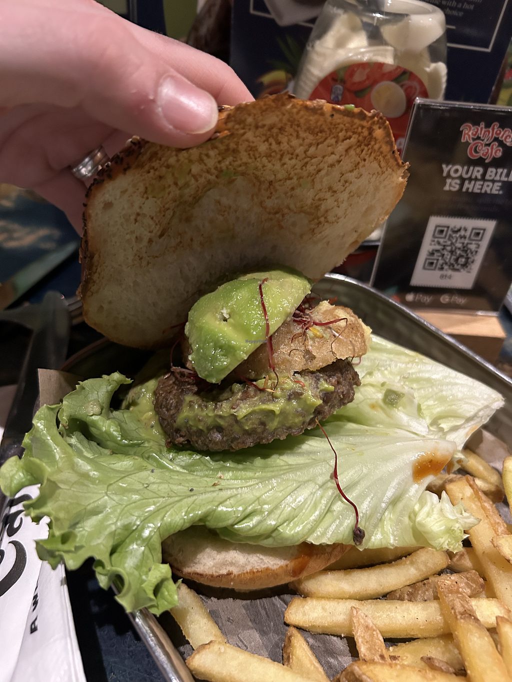 Standard for a lot of commercial chain restaurants, the vegan option is a beyond burger.