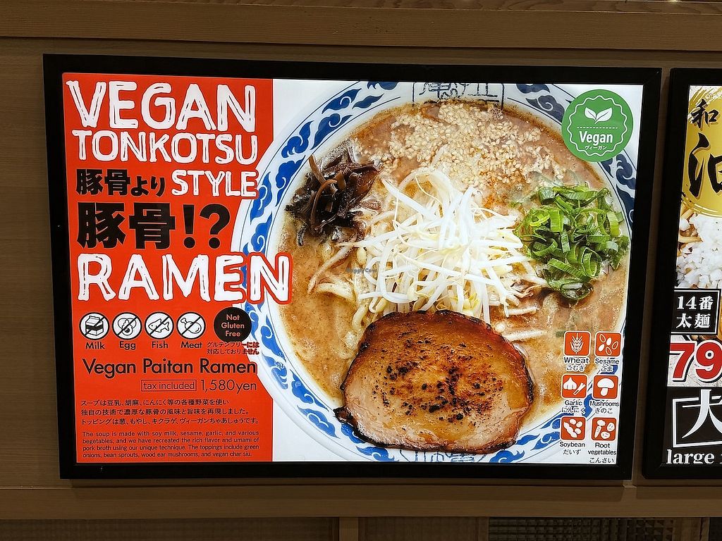 After dining at the location in the Osaka station, we were excited to find this spot while shopping in the area. They only had the soy ramen available. It was not rich and creamy like the ones we had at the station. The spicy ramen and vegan gyoza were also blocked off for ordering. My family didn’t enjoy the taste of the ramen and were disappointed with the flavors and options of ramen. The dining area were also dusty. I recommend going to Moon and Back in the Hep 5 mall which is also close by in the area for vegan ramen.